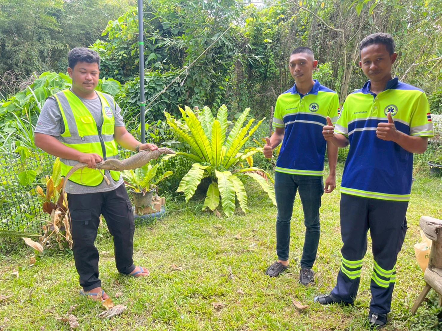 เมื่อวันที่ 4 ธ.ค. 68 นายโยธิน ประชามติรัฐ หัวหน้าชุดกู้ชีพ-กู้ภัยมุสลิมเบตง รับแจ้งขอความช่วยเหลือจากชาวบ้านในเขตเทศบาลเมืองเบตง อ.เบตง จ.ยะลา ว่าให้จับสัตว์เลื้อยคลานติดรั้วหลังบ้าน สร้างความหวาดกลัวให้กับชาวบ้านอย่างมาก ขอให้ช่วยดำเนินการจับปล่อยคืนสู่ธรรมชาติ เมื่ออาสาสมัครกู้ชีพ-กู้ภัยมุสลิมเบตงไปถึงพบ ตะกวด มีขนาดความยาวเกือบ 2 เมตร สีน้ำตาลเข้ม บนตัวมีลายจุดสีเหลืองจางกระจายทั่วไปทั้งลำตัว ส่วนหัวได้ติดรั้วบ้านของชาวบ้านพยายามดิ้นไปมาให้หลุดออกจากรั้วบ้าน ซึ่งทางอาสาสมัครกู้ชีพ-กู้ภัยมุสลิมเบตง ใช้เวลาไม่นานก็สามารถล็อกตัวจับตะกวดด้วยมือเปล่าไว้ได้ ก่อนจะพาไปนั่งท้ายรถ ปล่อยคืนสู่ธรรมชาติต่อไป