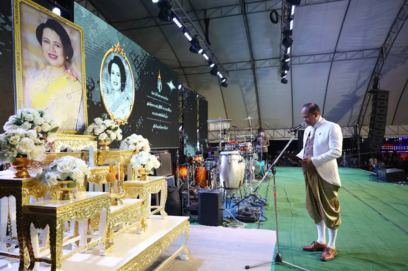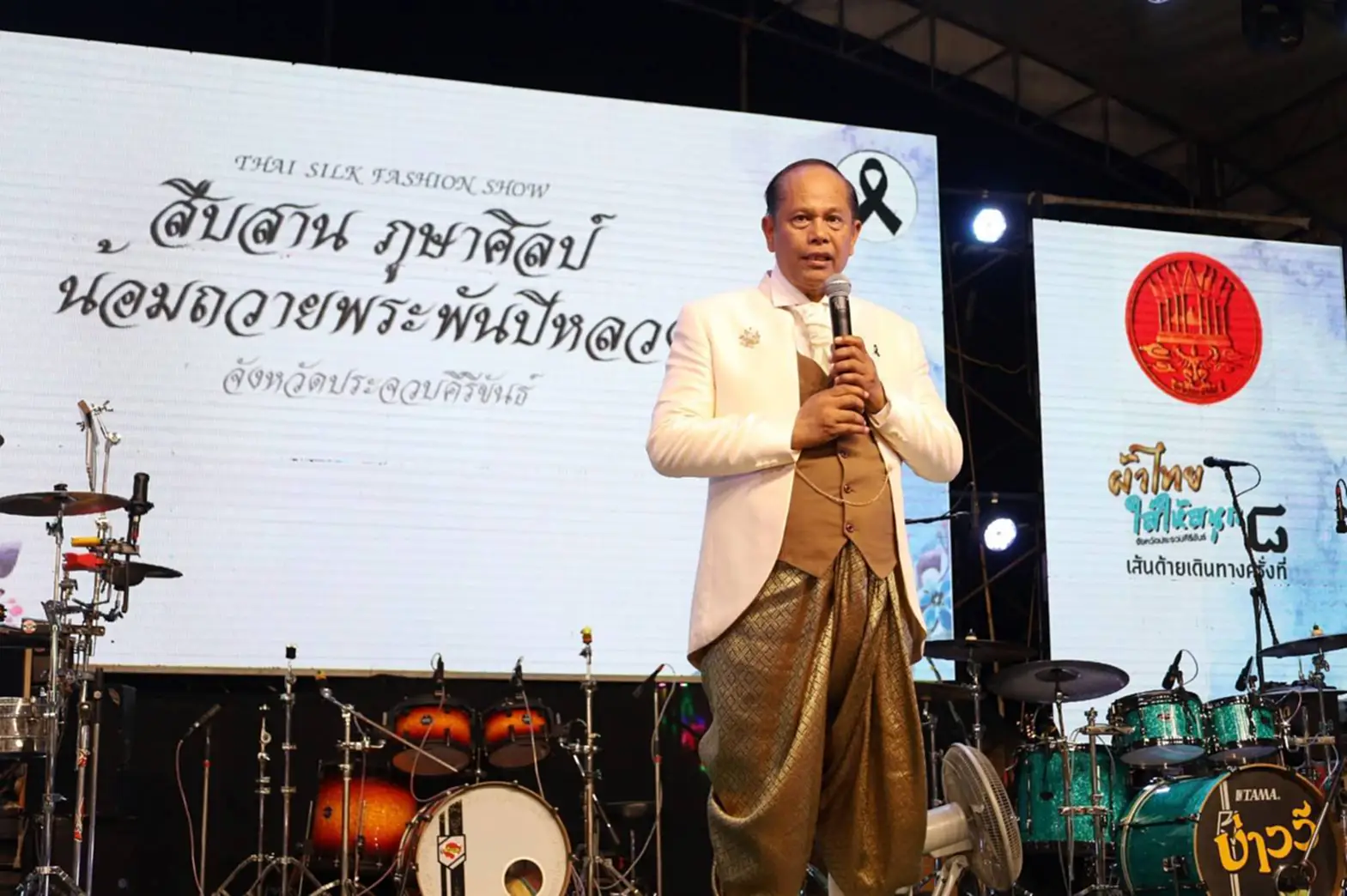 ก่อนเริ่มการเดินแบบ ผู้ว่าราชการจังหวัดฯ ได้กล่าวน้อมรำลึกในพระมหากรุณาธิคุณของสมเด็จพระนางเจ้าสิริกิติ์ พระบรมราชินีนาถ พระบรมราชชนนีพันปีหลวง ที่ทรงทุ่มเทพระวรกายในการอนุรักษ์ผ้าไทย และยกระดับคุณค่าภูษาศิลป์สู่ระดับสากล จนเป็นต้นแบบของ “ชุดไทยพระราชนิยม” อันวิจิตรงดงามทั้งแปดแบบ