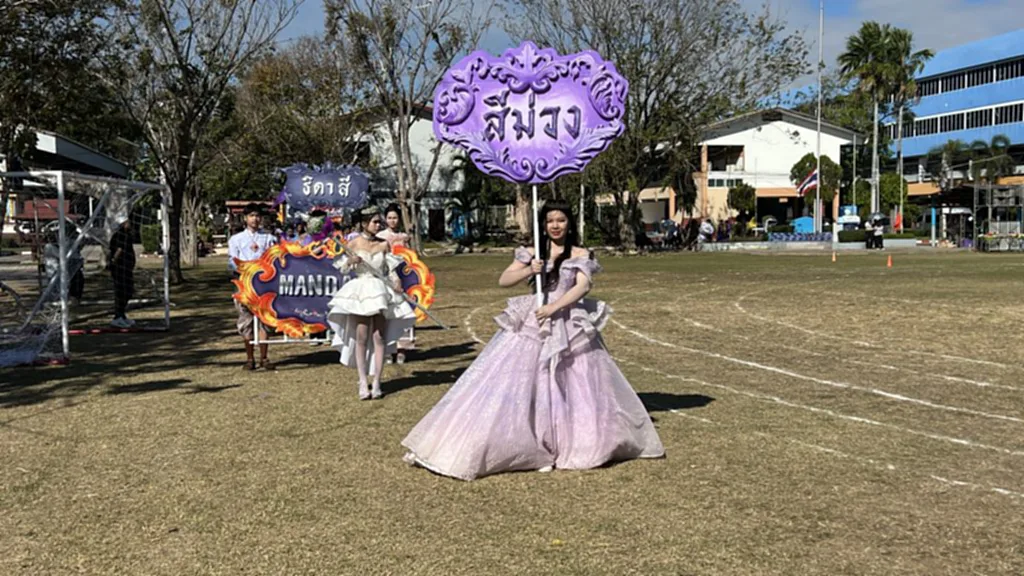 แม้แดดเช้าจะอุ่นสบาย แต่พลังเสียงเชียร์และแรงใจของกองเชียร์นั้น “ร้อนระอุยิ่งกว่า” ไม่แพ้สนามกีฬามืออาชีพ เหล่านักกีฬาเดินสวนสนามอย่างองอาจ ก่อนเข้าสู่พิธีเปิดอย่างเป็นทางการ