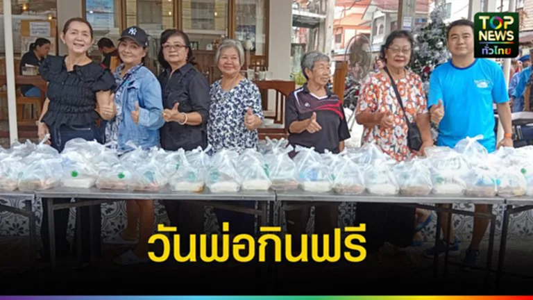 คึกคัก วันพ่อ กินฟรี คนแวะ เยอะแยะความอร่อยร้านข้าวแกงชื่อดังศรีราชา มื้อเช้าถึงเที่ยงทานฟรีกว่า500 กล่อง ซึ่งจัดเป็นปีที่ 7 แล้ว