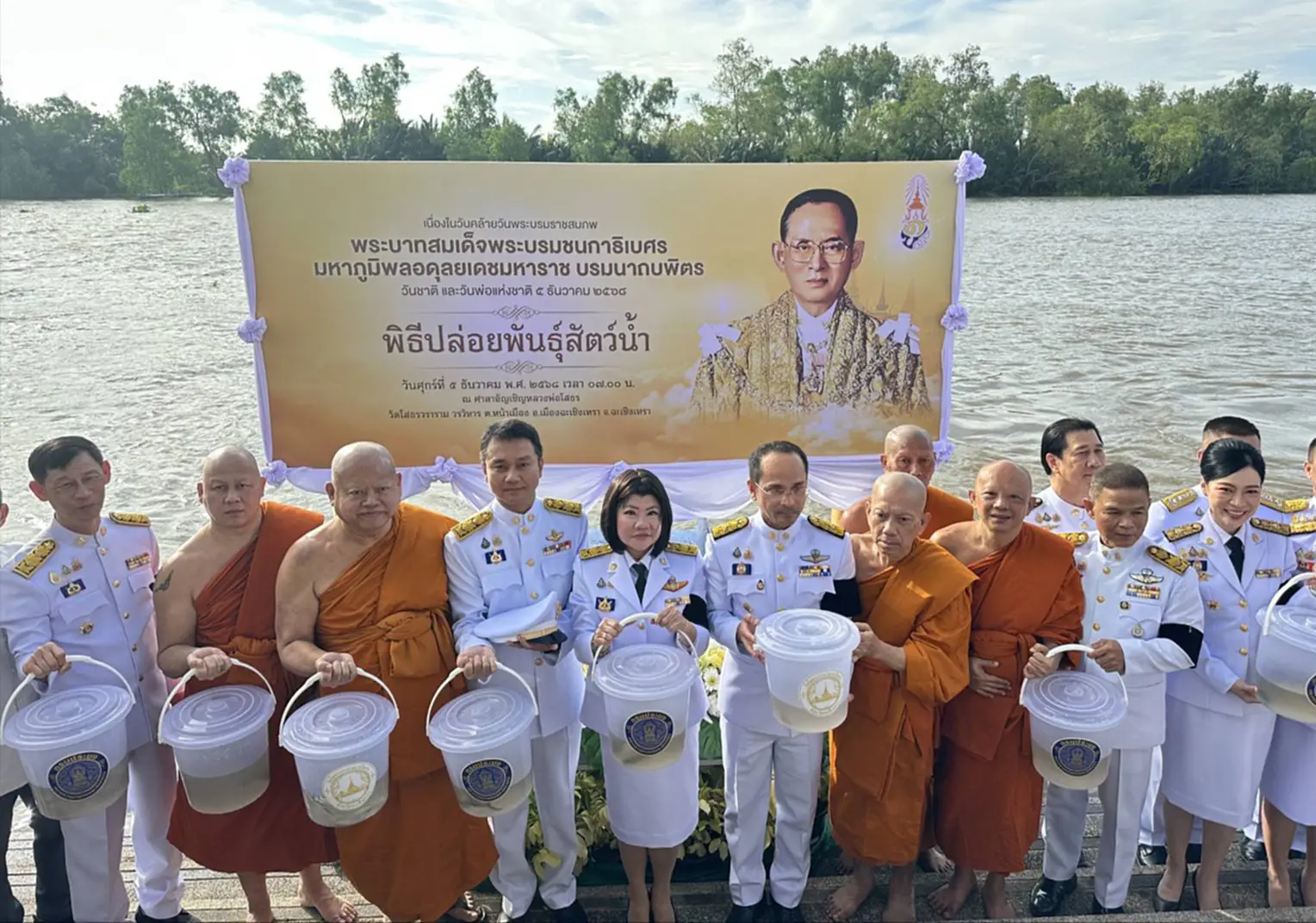 วันศุกร์ที่ 5 ธันวาคม พ.ศ. 2568 เวลา 07.30 น. เป็นต้นไป ณ ศาลาอัญเชิญหลวงพ่อโสธรขึ้นจากแม่น้ำบางปะกง วัดโสธรวราราม วรวิหาร อำเภอเมืองฉะเชิงเทรา นางสาวฉัตรประอร นิยม รองผู้ว่าราชการจังหวัด รักษาราชการแทนผู้ว่าราชการจังหวัดฉะเชิงเทรา เป็นประธานในพิธีเจริญพระพุทธมนต์ ทำบุญตักบาตรถวายพระราชกุศล จำนวน 89 รูป พร้อมด้วย นายสิทธิรักษ์ ด้วงศรีทอง ผู้พิพากษาหัวหน้าศาลจังหวัดฉะเชิงเทรา, นางกองกนก โกศัลลกูฏ สุขพันธุ์ถาวร ผู้พิพากษาหัวหน้าศาลเยาวชนและครอบครัวจังหวัดฉะเชิงเทรา, นายประสิทธิ์ อินทโชติ รองผู้ว่าราชการจังหวัดฉะเชิงเทรา, พล.ต.ต.เกรียงไกร บุญซ้อน ผบก.ภ.จว.ฉะเชิงเทรา, พล.ต. สังกาศ สร้อยคำ ผบ.พล.ร.11, นางธีราพร สุริสีหเสถียร อัยการจังหวัดฉะเชิงเทรา, นายพีรพล ลือล่า ปลัดจังหวัดฉะเชิงเทรา, นายสาครินทร์ จำปา หัวหน้าสำนักงานจังหวัดฉะเชิงเทรา, หัวหน้าส่วนราชการระดับจังหวัด และข้าราชการ เจ้าหน้าที่ โดยมี พระเทพภาวนาวชิรคุณ วิ. เจ้าอาวาสวัดโสธรวราราม วรวิหาร เจ้าคณะจังหวัดฉะเชิงเทรา เป็นประธานฝ่ายสงฆ์ จากนั้น ประธานและ ผู้เข้าร่วมพิธีร่วมปล่อยพันธ์สัตว์น้ำ ปลาไทย 10 ชนิด จำนวน 54,800 ตัว เพื่อถวายเป็นพระราชกุศล