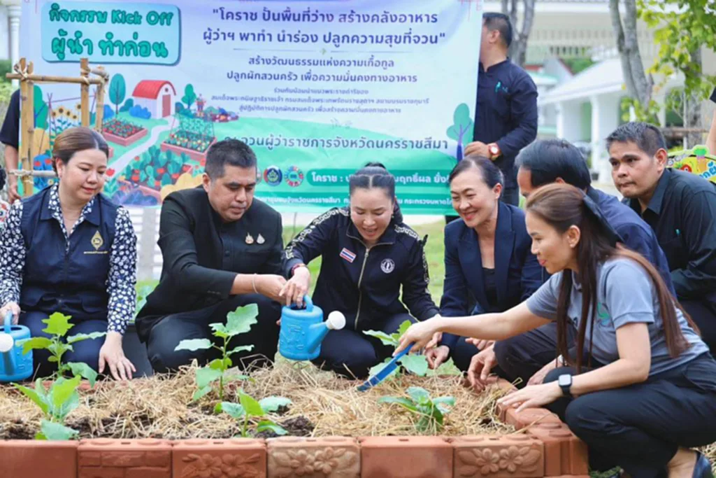 นครราชสีมา ผู้ว่าโคราช นำทีม ปลูกผักสวนครัว ร่วมขับเคลื่อนโครงการ “โคราชปั้นพื้นที่ว่าง สร้างคลังอาหาร” สู่ความมั่นคงทางอาหารอย่างยั่งยืน