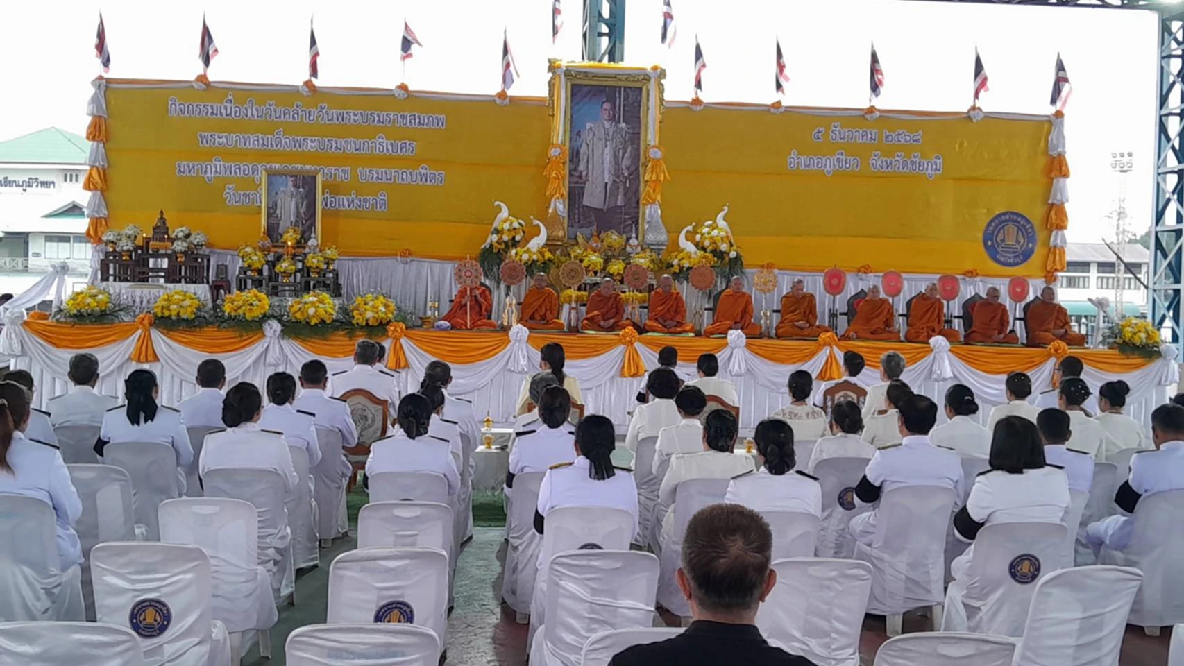 เมื่อวันที่ 5 ธันวาคม 2568 เวลา 08.00 น. ที่ลานกีฬาต้านยาเสพติด เทศบาลตำบลภูเขียว อำเภอภูเขียว จังหวัดชัยภูมิ นายวรศิษย์ พุฒจีบ รักษาราชการฯปลัดจังหวัดชัยภูมิ เป็นประธานนำคณะตุลาการ อัยการ ข้าราชการ ตำรวจ เทศบาลตำบลภูเขียว ผู้นำท้องถิ่น สมาชิกสภาผู้แทนราษฎร เขต6 สมาชิกกิ่งกาชาดอำเภอภูเขียว พนักงานรัฐวิสาหกิจ ภาคการศึกษา องค์กรปกครองส่วนท้องถิ่น คหบดี และประชาชนในพื้นที่ ร่วมประกอบพิธีน้อมรำลึกในพระมหากรุณาธิคุณ พระบาทสมเด็จพระบรมชนกาธิเบศร มหาภูมิพลอดุลยเดชมหาราช บรมนาถบพิตร เนื่องในวันคล้ายวันพระบรมราชสมภพ วันชาติ และ วันพ่อแห่งชาติ