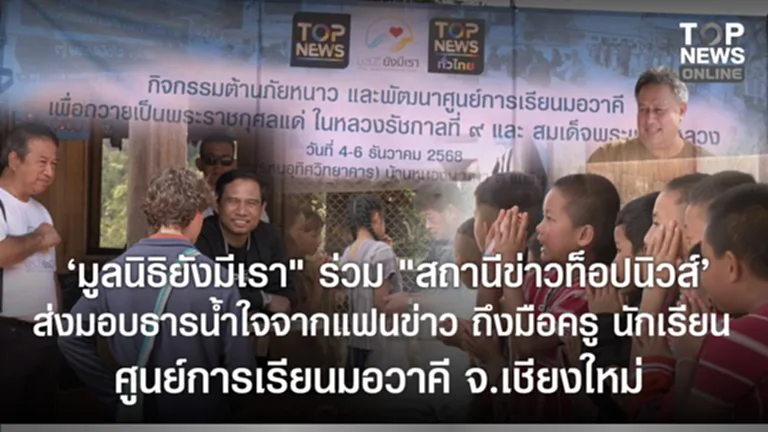 5 ธ.ค. 2568 นายอุดร แสงอรุณ บรรณาธิการบริหาร สถานีข่าวท็อปนิวส์ พร้อมทีมงานมูลนิธิยังมีเรา นำโดยนายประวิทย์ สุขนิมิตร ผู้จัดการมูลนิธิฯ สำนักข่าวท็อปนิวส์ และผู้สื่อข่าว ภูมิภาค ท็อปนิวส์ ทั่วไทย นำโดยนายศิริพงษ์ กลิ่นทวี บรรณาธิการบริหาร ท็อปนิวส์ ทั่วไทย และผู้ใหญ่ใจดีองค์กรภาคีเครือข่าย จากหลากหลายจังหวัด ร่วมกันเดินทางมาถึงศูนย์การเรียนมอวาคี บ้านหนองมณฑา ต.แม่วิน อ.แม่วาง จ.เชียงใหม่ เพื่อนำน้ำใจจากแฟนข่าว ส่งตรงถึงเด็กๆและครู