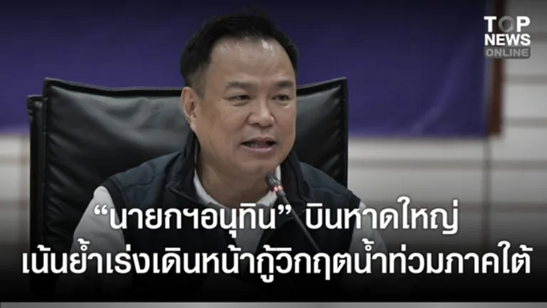 "นายกฯ อนุทิน" บินหาดใหญ่ เน้นย้ำเร่งเดินหน้ากู้วิกฤต เผยทุกภารกิจจนท.ทุกฝ่ายช่วยเหลือ น้ำท่วมภาคใต้ ความทราบถึงพระเนตรพระกรรณ​ พร้อมพระราชทานคำชื่นชม