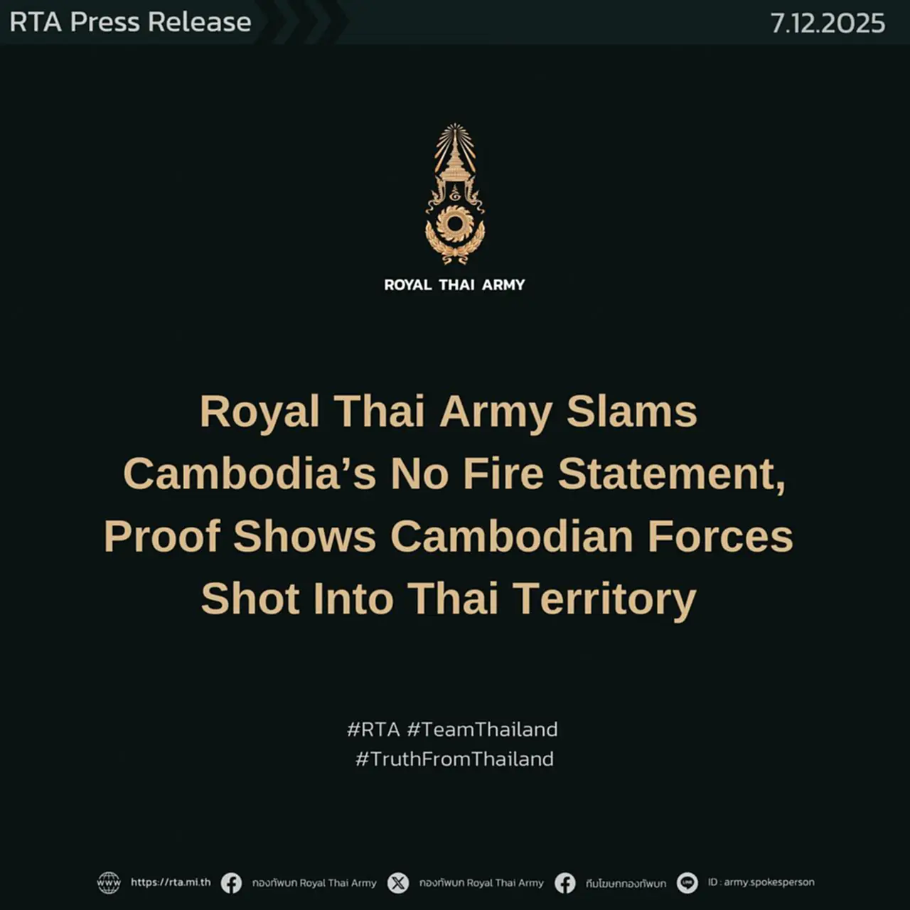 Royal Thai Amy Slams Cambodia’s Claim of No Fire, Cites Clear Evidence Cambodian Troops Opened Fire, Wounding Two Soldiers Inside Thai Territory