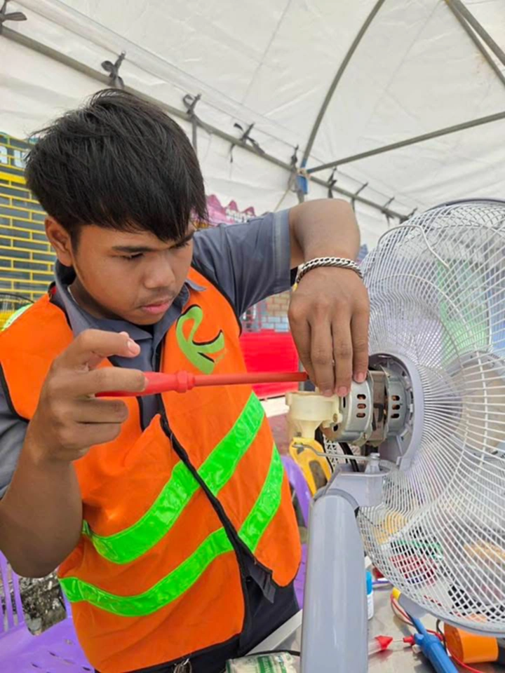 นอกจากให้บริการ ณ ที่ตั้งแล้วทีม Fix it อาชีวะจิตอาสา ได้ลงพื้นที่ตรวจ ซ่อมระบบไฟฟ้าช่วยลดความเสี่ยงอันตรายหลังน้ำลดในเขต 8 หาดใหญ่ ถนนราษฎร์อุทิศ ซอย 32/1 และซอย 34 ตรวจสอบและซ่อมแซมระบบไฟฟ้าแล้วกว่า 55 ครัวเรือน ซ่อมแซมระบบแสงสว่างกว่า 192 รายการ และเข้าตรวจความปลอดภัยของระบบไฟฟ้า 139 ครัวเรือน รวมถึงโรงครัวอาชีวะ 15 แห่ง ให้บริการ อาหารและถุงยังชีพแล้วกว่า 155,000 ชุด เพื่อช่วยเหลือประชาชนในพื้นที่ประสบภัยอย่างต่อเนื่อง