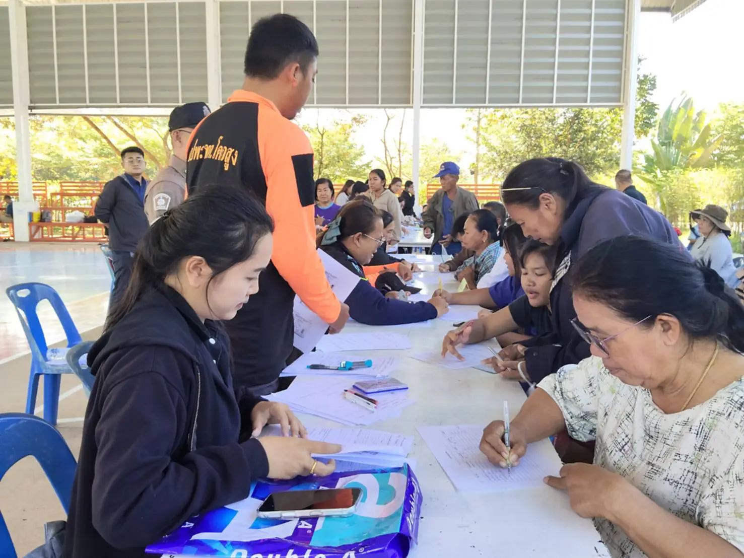 ผู้สื่อข่าวรายงานว่า บรรยากาศที่ศูนย์พักพิงในพื้นที่ ต.บ้านแก้ง อ.เมืองสระแก้ว ซึ่งเป็นหนึ่งในจำนวนมากกว่า 10 ศูนย์ที่ส่วนราชการตั้งขึ้น เพื่อรองรับผู้อพยพจากพื้นที่ชายแดน โดยมีชาวบ้านจากพื้นที่ ต.โคกสูง และ ต.โนนหมากมุ่น อ.โคกสูง จ.สระแก้ว ทะยอยเดินทางพร้อมข้าวของเครื่องใช้ เข้ามาลงทะเบียนกับเจ้าหน้าที่ อบต.ในท้องถิ่น ซึ่งเดินทางมาอำนวยความสะดวก ในการถ่ายเอกสารและจัดโต๊ะลงทะเบียน เพื่อรักษาสิทธิ์ให้กับชาวบ้านที่เดือดร้อน กรณีที่มีการจ่ายเงินชดเชยหรือช่วยเหลือจากทางการในภายหลัง รวมทั้งเก็บตัวเลขผู้เข้าพักในศูนย์พักพิงแต่ละแห่งอย่างละเอียด ซึ่งคาดว่า จะมีมากกว่า 500 คน