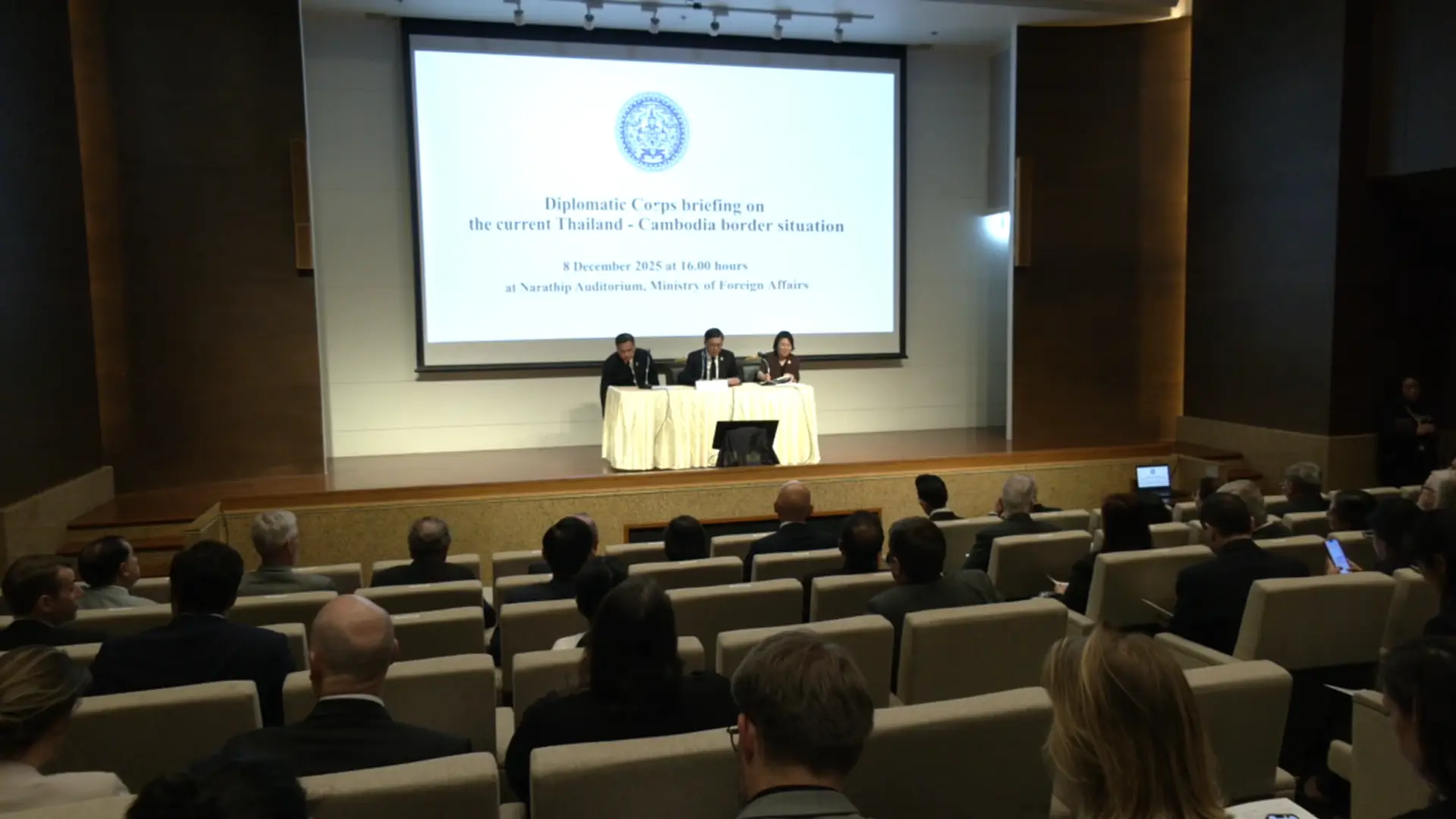 เมื่อวันที่ 8 ธันวาคม 2568 เวลา 16.30 น. ที่กระทรวงการต่างประเทศ นายสีหศักดิ์ พวงเกตุแก้ว รัฐมนตรีว่าการกระทรวงการต่างประเทศ (รมว.กต.) เชิญเอกอัครราชทูต อุปทูตผู้แทน และผู้แทนสถานเอกอัครราชทูตต่างประเทศประจำประเทศไทย รวมฟังบรรยายสรุปถึงสถานการณ์ชายแดนไทย-กัมพูชา หลังเกิดเหตุปะทะกันตั้งแต่เมื่อวานนี้ โดยชี้แจงว่า ฝ่ายกัมพูชาเปิดฉากยิงใส่ฝ่ายไทยก่อน