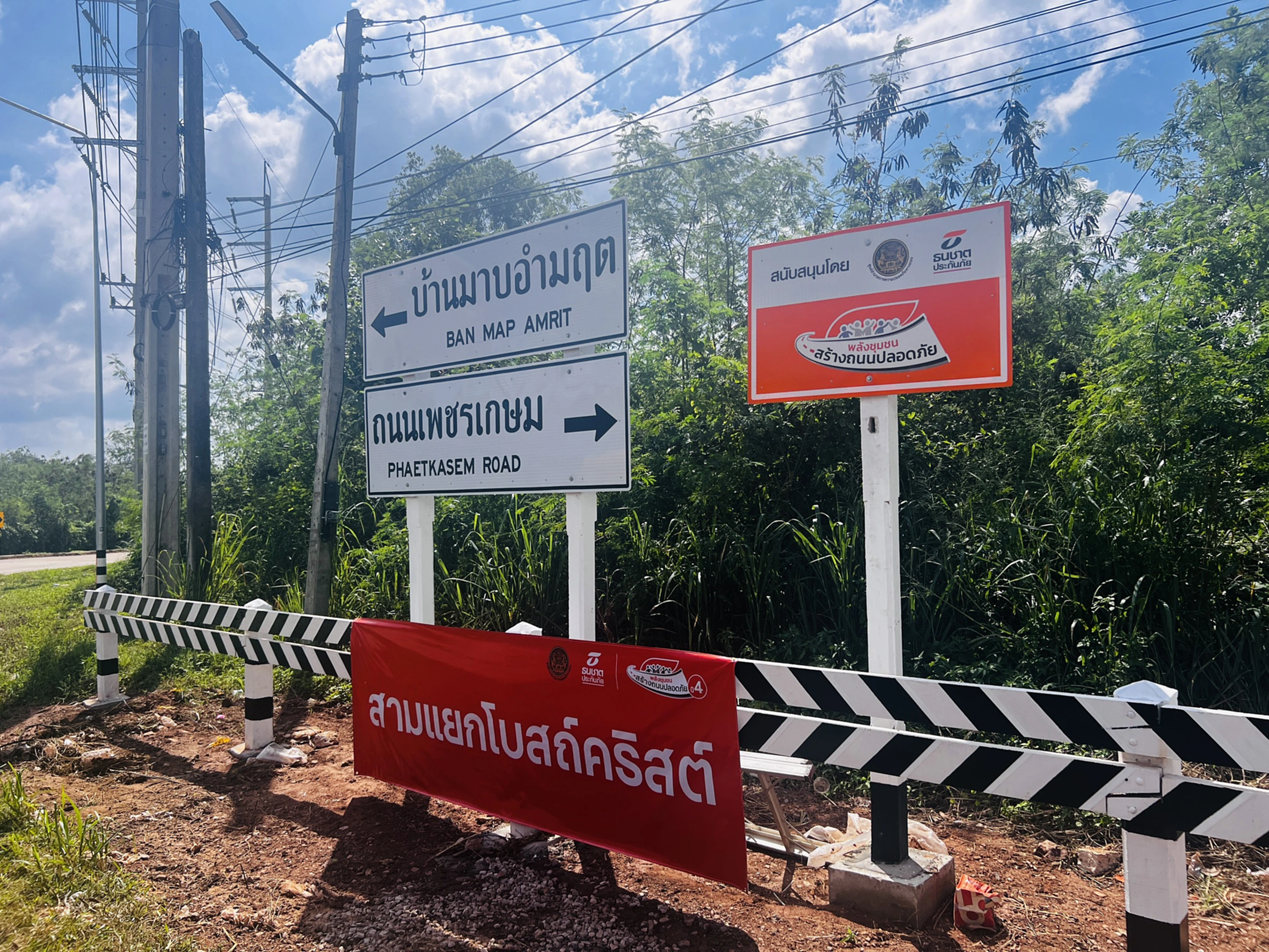 ธนชาตประกันภัย จึงสนับสนุนงบประมาณ จำนวน 200,000 บาท ให้แก่เทศบาลตำบลมาบอำมฤต เพื่อจัดให้มีอุปกรณ์ลดจุดเสี่ยงบนถนน และอาณัติสัญญาณด้านความปลอดภัยทางถนน จำนวนทั้งสิ้น 8 รายการ ประกอบด้วย ไฟกระพริบ, ป้ายแบบ ต.13 (ป้ายเตือนทางแยก), ป้ายแบบ บ.54 (ป้ายบังคับความเร็วขั้นต่ำ) จำนวน 1 ชุด, ไฟกระพริบ, ป้ายแบบ ต.14 (ป้ายเตือนทางแยก) จำนวน 1 ชุด, ไฟกระพริบ, ป้ายแบบ บ.1 (ป้ายบังคับหยุด) จำนวน 1 ชุด, ป้ายบอกทาง แบบ น.2 (2 แผ่นป้าย/ชุด) จำนวน 1 ชุด, ป้ายแบบ ต.63 /ต.66 เตือนแนวทาง (2 แผ่นป้าย/ชุด) จำนวน 3 ชุด, ป้ายแบบ ต.63/ต.66 เตือนแนวทาง แบบพลังงานแสงอาทิตย์ (2 แผ่นป้าย/ชุด) จำนวน 2 ชุด, แผงไม้กั้นถนน จำนวน 12 เมตร, หมุดลูกแก้วสะท้อนแสง พลังงานแสงอาทิตย์ จำนวน 30 ดวง