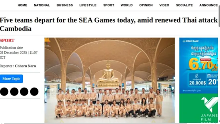 เดอะพนมเปญโพสต์ สื่อกัมพูชา รายงานว่าคณะกรรมการโอลิมปิกแห่งชาติกัมพูชา (NOCC) ออกแถลงการณ์วันนี้ (8 ธค.) ชี้แจงว่าทีมนักกีฬากัมพูชา 5 ทีมจากทั้งสิ้น 12 ทีมจะเดินทางถึงประเทศไทยในวันนี้ แม้ทหารไทยจะเปิดฉากโจมตีทหารกัมพูชารอบใหม่เมื่อวานและเช้าวันนี้ก็ตาม