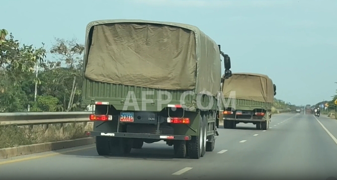 AFP ได้เผยคลิปรถบรรทุกทหารจำนวน 2 คัน พร้อมข้อความระบุว่าเป็นรถของกองทัพกัมพูชาขณะวิ่งผ่านจังหวัดพระตะบองเมื่อช่วงเช้าที่ผ่านมา (อังคารที่ 9 ธค.)เพื่อมุ่งหน้าไปยังชายแดนไทย โดยไม่ได้ระบุว่าไปที่ชายแดนด้านไหน อย่างไรก็ตาม รถบรรทุกมีผ้าใบปิดมิดชิดรอบด้าน ไม่สามารถมองเห็นว่าด้านในบรรทุกอะไรมา