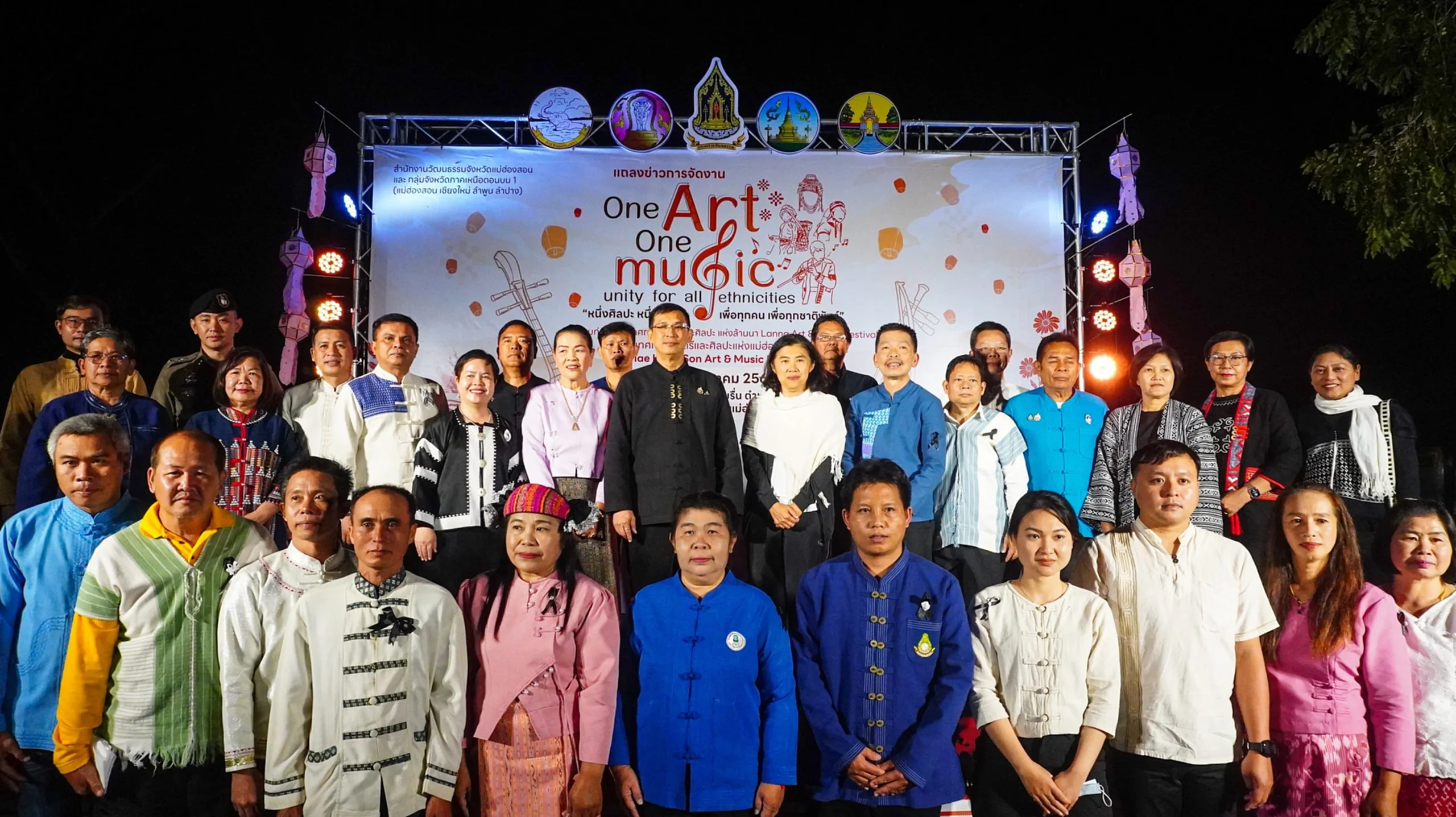 ทั้งนี้ การจัดงาน “One art , One Music – Unity for all Ethnicies 1 ศิลปะ 1 ดนตรีเพื่อทุกคนเพื่อทุกชาติพันธุ์ ” เป็นงานที่รวบรวมงานศิลปะและดนตรีผสมผสานความหลากหลายทางวัฒนธรรมของภูมิภาคล้านนาตะวันตกและสะท้อนความงดงามของการอยู่ร่วมกันท่ามกลางความแตกต่างของชาติพันธุ์ กลุ่มจังหวัดภาคเหนือตอนบน 1 (จังหวัดแม่ฮ่องสอน จังหวัดเชียงใหม่ จังหวัดลำพูน จังหวัดลำปาง) เพื่อส่งเสริมการใช้ทุนทางวัฒนธรรมเป็นรากฐาน การขับเคลื่อนการท่องเที่ยวกลุ่มจังหวัดภาคเหนือตอนบน 1 สร้างการเชื่อมโยงการท่องเที่ยวเชิงวัฒนธรรม สร้างสรรค์สู่ท้องถิ่น อีกทั้งยังเป็นการส่งเสริมการเพิ่มมูลค่าทางการตลาด โดยมีเวทีสร้างองค์ความรู้และสร้างสรรค์ผลงานขับเคลื่อนเศรษฐกิจและยกระดับการสร้างมูลค่าแก่สินค้าและบริการทางท่องเที่ยวเชิงวัฒนธรรมอย่างสร้างสรรค์