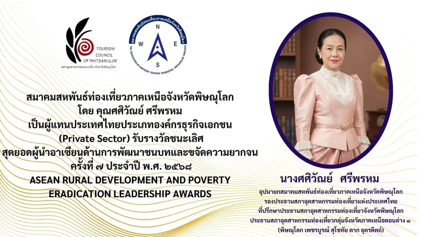 วันนี้ 9 ธันวาคม 2568 นางศศิวัณย์ ศรีพรหม นายกสมาคมสหพันธ์ท่องเที่ยวภาคเหนือจังหวัดพิษณุโลก และประธานสภาอุตสาหกรรมท่องเที่ยวกลุ่มภาคเหนือตอนล่าง 1 ได้รับเกียรติเป็นผู้แทนประเทศไทยเข้าร่วมเสวนาใน Session 1: SDG 1 – Road to “No Poverty” ASEAN ภายใต้หัวข้อ 14th ASEAN Public Private People Partnership Forum on Rural Development and Poverty Eradication (การประชุมเวทีความร่วมมือระหว่างภาครัฐ ภาคเอกชน และประชาชนแห่งอาเซียน ครั้งที่ 14 ว่าด้วยการพัฒนาชนบทและการขจัดความยากจน) ที่จัดขึ้นเมื่อวันที่ 9 ธันวาคม 2568