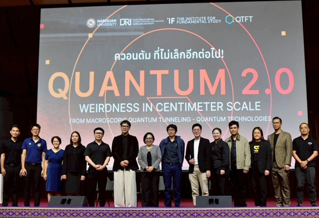 เมื่อวันที่ 9 ธันวาคม 2568 ศาสตราจารย์ ดร.เภสัชกรหญิงกรกนก อิงคนินันท์ รองอธิการบดีฝ่ายพัฒนางานวิจัยและนวัตกรรม มหาวิทยาลัยนเรศวร เป็นประธานกล่าวต้อนรับและกล่าวถึงภาพรวมการจัดกิจกรรมอบรมเชิงแลกเปลี่ยน “NU Research World Café 2026” จัดโดยวิทยาลัยเพื่อการค้นคว้าระดับรากฐาน ร่วมกับกองการวิจัยและนวัตกรรม พร้อมรับฟังการบรรยายสาธารณะ หัวข้อ “ควอนตัม ที่ไม่เล็กอีกต่อไป โลกแห่งความประหลาดที่ขยายสู่ระดับมหภาค” เจาะลึก “ปรากฏการณ์การลอดอุโมงค์ควอนตัม” (Quantum tunnelling) และความประหลาดของโลกควอนตัม ทำความเข้าใจเกี่ยวกับปรากฏการณ์ควอนตัมที่ไม่ได้จำกัดแค่ระดับอะตอม แต่ปรากฏได้ในระดับมหภาค (Macroscopic level)