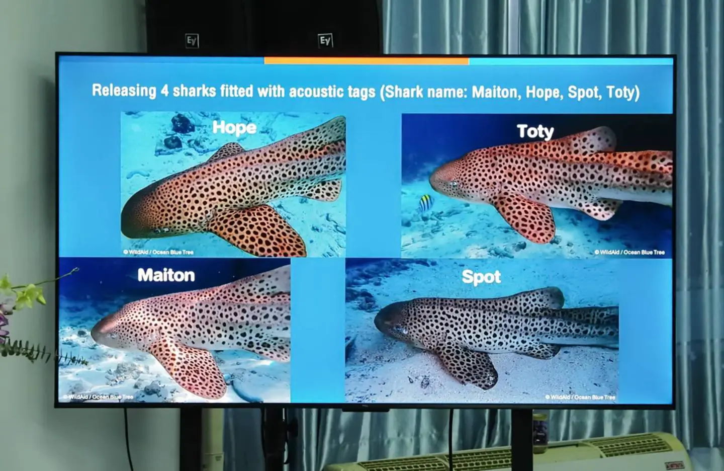 โดย ฉลามเสือดาวทั้ง 4 ตัว ได้แก่ ไม้ท่อน (Maiton), โฮป (Hope), สปอต (Spot) และ โทตี้ (Toty) ปัจจุบันมีอายุเฉลี่ยประมาณเกือบ 2 ปี ความยาวตลอดตัวประมาณ 100-140 เซนติเมตร โดยฉลามทั้งหมดเกิดจากความสำเร็จของโครงการเพาะพันธุ์ของ อควาเรีย ภูเก็ต และได้รับการอนุบาลและฝึกฝนในคอกทะเลบนเกาะไม้ท่อน เพื่อให้คุ้นเคยกับสภาพแวดล้อมทางทะเลตามธรรมชาติ และฝึกการหาอาหารด้วยตนเอง ก่อนการปล่อย ตัวแทนภาคีโครงการได้ร่วมกันทำพิธีอวยพรโดยเทน้ำทะเลที่มีกลีบดอกไม้ เพื่อเป็นสัญลักษณ์แห่งความปรารถนาดีให้ฉลามทั้งสี่ตัวเดินทางกลับสู่ถิ่นอาศัยอย่างปลอดภัย ทำให้ยอดรวมฉลามเสือดาวที่ปล่อยคืนสู่ธรรมชาติในปี 2568 มีจำนวนรวม 7 ตัว