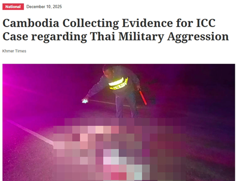 ขแมร์ไทม์สและเดอะ พนมเปญโพสต์ สื่อกัมพูชารายงานโดยอ้างคำให้สัมภาษณ์ของเจ้าหน้าที่ระดับสูงในรัฐบาลกัมพุชาเปิดเผยในวันนี้ (10 ธค.) ว่าการโจมตีอธิปไตยและบูรณภาพแห่งดินแดนกัมพูชาอย่างต่อเนื่องของไทย ได้ก่อให้เกิดความเสียหายอย่างกว้างขวางและทำให้พลเรือนเสียชีวิตจำนวนมาก โดยกัมพูชากล่าวหาทหารไทยว่าใช้อาวุธหนักทุกประเภท รวมถึงเครื่องบินรบที่นำระเบิดเข้ามาทิ้งลงในพื้นที่ชุมชนภายในดินแดนกัมพูชา