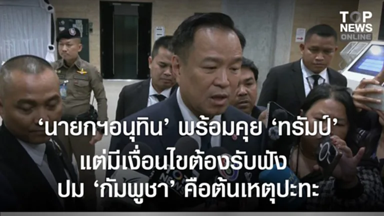 “นายกฯอนุทิน” พร้อมคุย “ทรัมป์” แต่มีเงื่อนไขต้องรับฟังปัญหา “กัมพูชา” คือต้นเหตุปะทะ ต้องนัดหมายผ่านกต. ฝ่ายความมั่นคงเข้าฟังร่วมตัดสินใจ – Top News รายงาน