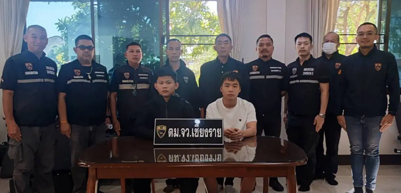 สอบถามผ่านล่ามแปล พบว่าชื่อ MR.CAI RONG GUANG อายุ 18 ปี สัญชาติจีน และ MR.HONGHUI XIE อายุ 18 ปี สัญชาติจีน (ทราบชื่อภายหลังผ่านล่าม) ได้หลบหนีมาทางประเทศลาวเพื่อจะเข้ามาพักในพื้นที่ประเทศไทย ซึ่งมีกลุ่มบุคคลพามาพัก เมื่อส่งเสร็จได้ปล่อยทั้ง 2 ไว้ที่บ้านหลังดังกล่าว จนมาถูกเจ้าหน้าที่จับกุมตัว จึงได้แจ้งข้อกล่าวหาว่า เป็นคนต่างด้าวเข้ามาและอยู่ในราชอาณาจักรโดยไม่ได้รับอนุญาต ควบคุมตัวนำส่ง พนักงานสอบสวน สภ.บ้านดู่ ดำเนินคดีตามกฎหมาย และจะได้ สืบสวนติดตาม ขยายผลในส่วนที่เกี่ยวข้องต่อไป