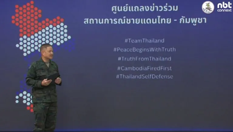 11 ธ.ค. 2568 ศูนย์แถลงข่าวร่วมสถานการณ์ชายแดนไทย-กัมพูชา พลเรือตรีสุรสันต์ คงศิริ โฆษกกลาโหม แถลงสถานการณ์ชายแดนไทย -กัมพูชา ว่า กองทัพบกรายงานสถานการณ์ตามไทม์ไลน์ ทางฝ่ายกัมพูชาโจมตีด้วยอาวุธหนัก BM21 รวมถึงโดรนพลีชีพ ปืนครก เข้ามาในพื้นที่ฝ่ายไทยต่อเนื่อง โดยเฉพาะช่องอานม้า เนิน 667 ส่วนกองทัพเรือ มียุทธการปราบปรปักษ์ ที่ดำเนินการอย่างต่อเนื่องในพื้นที่จันทบุรีและตราด ซึ่งตรวจพบการใช้โดรนของฝ่ายกัมพูชา เช่นเดียวกัน การปฏิบัติของกองทัพบก และกองทัพเรือ ยังเป็นไปตามแผน และมีความคืบหน้าอย่างต่อเนื่อง