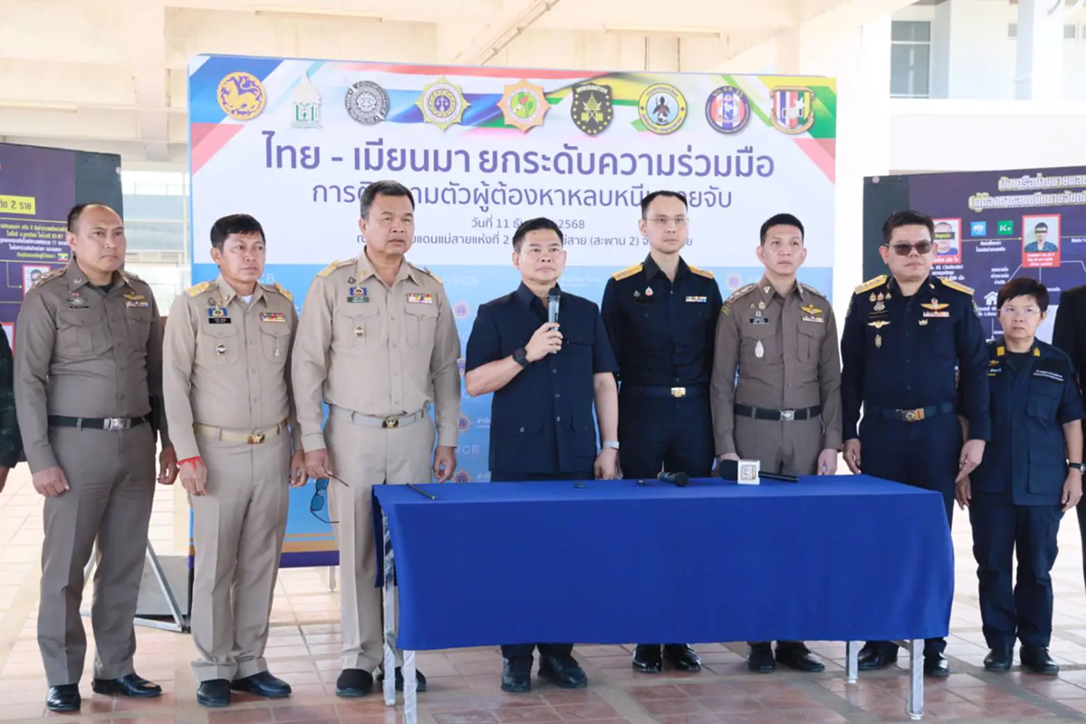 วันที่ 11 ธันวาคม 2568 พ.ต.ต.สุริยา สิงหกมล เลขาธิการ ป.ป.ส. พร้อมด้วย นายสุพจน์ แสนมี ปลัดจังหวัดเชียงราย นายวรายุทธ ค่อมบุญ นายอำเภอแม่สาย นายคณิศร ภาพีรนนท์ ผู้อำนวยการสำนักปราบปรามยาเสพติด พ.ต.อ.สุรศักดิ์ เทียนทอง ผกก.ตม.จว.เชียงราย นายวาริส วิสารทานนท์ นายด่านศุลกากรแม่สาย พันโท ธัณชพัทธ์ สอนถม ผู้บังคับกองบังคับการควบคุมผาทมิฬ ฉก.ทัพเจ้าตากฯ นายดนุชา ไชยวงศ์ ผู้อำนวยการส่วนอำนวยการและบังคับใช้กฎหมาย สำนักงาน ปปส. ภาค 5 นายสุวิทย์ สิงห์อยู่ ผู้อำนวยการส่วนอำนวยการและบังคับใช้กฎหมาย สำนักงาน ปปส. ภาค 6 ผู้แทนตำรวจภูธรภจังหวัดเชียงราย และผู้แทนสำนักงานประสานงานชายแดนไทย – เมียนมา (TBC) ลงพื้นที่จังหวัดเชียงราย เพื่อประสานความร่วมมือด้านปราบปรามยาเสพติดและอาชญากรรมข้ามชาติระหว่างไทยกับสหภาพเมียนมา พร้อมรับมอบตัวผู้ต้องหาสัญชาติไทยหลบหนีหมายจับ