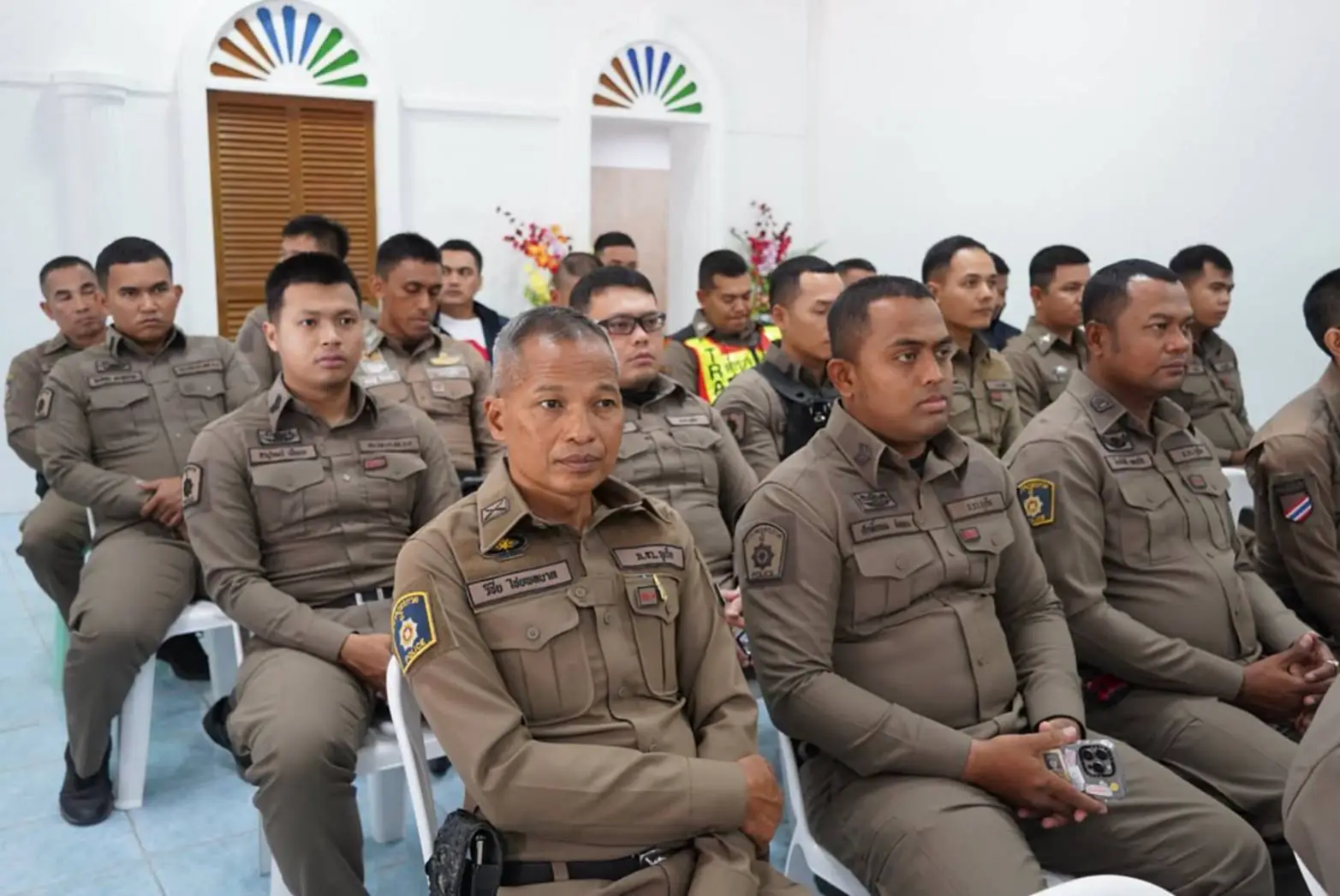 วันที่ 11 ธ.ค. 2568 ณ โรงเรียนวัดสว่างอารมณ์ ต.ราไวย์ อ.เมือง จ.ภูเก็ต สภ.ฉลอง จว.ภูเก็ต ให้การต้อนรับ พ.ต.อ.สุระศักดิ์ ใจดี เนื่องในโอกาสเดินทางมารับตำแหน่ง ผกก.สภ.ฉลอง คนใหม่ พร้อมประชุมรับมอบนโยบายตามแนวทางของสำนักงานตำรวจแห่งชาติ และจัดทำบันทึกข้อตกลงความร่วมมือ (MOU) ด้านการรักษาความปลอดภัย กับ 4 หน่วยงาน ระหว่างสถานีตำรวจภูธรฉลอง กับ องค์กรปกครองส่วนท้องถิ่น และฝ่ายปกครอง โดยมี สำนักงานเทศบาลตำบลฉลอง, สำนักงานเทศบาลตำบลราไวย์ กำนันตำบลฉลอง กำนันตำบลราไวย์ ผู้แทนส่วนราชการ หน่วยงานภาครัฐ ภาคเอกชน ข้าราชการตำรวจสถานีตำรวจภูธรฉลอง แขกผู้มีเกียรติ และสื่อมวลชนเข้าร่วม