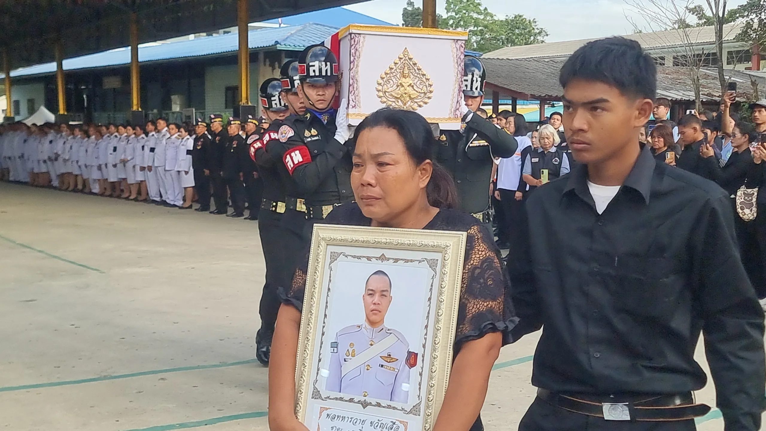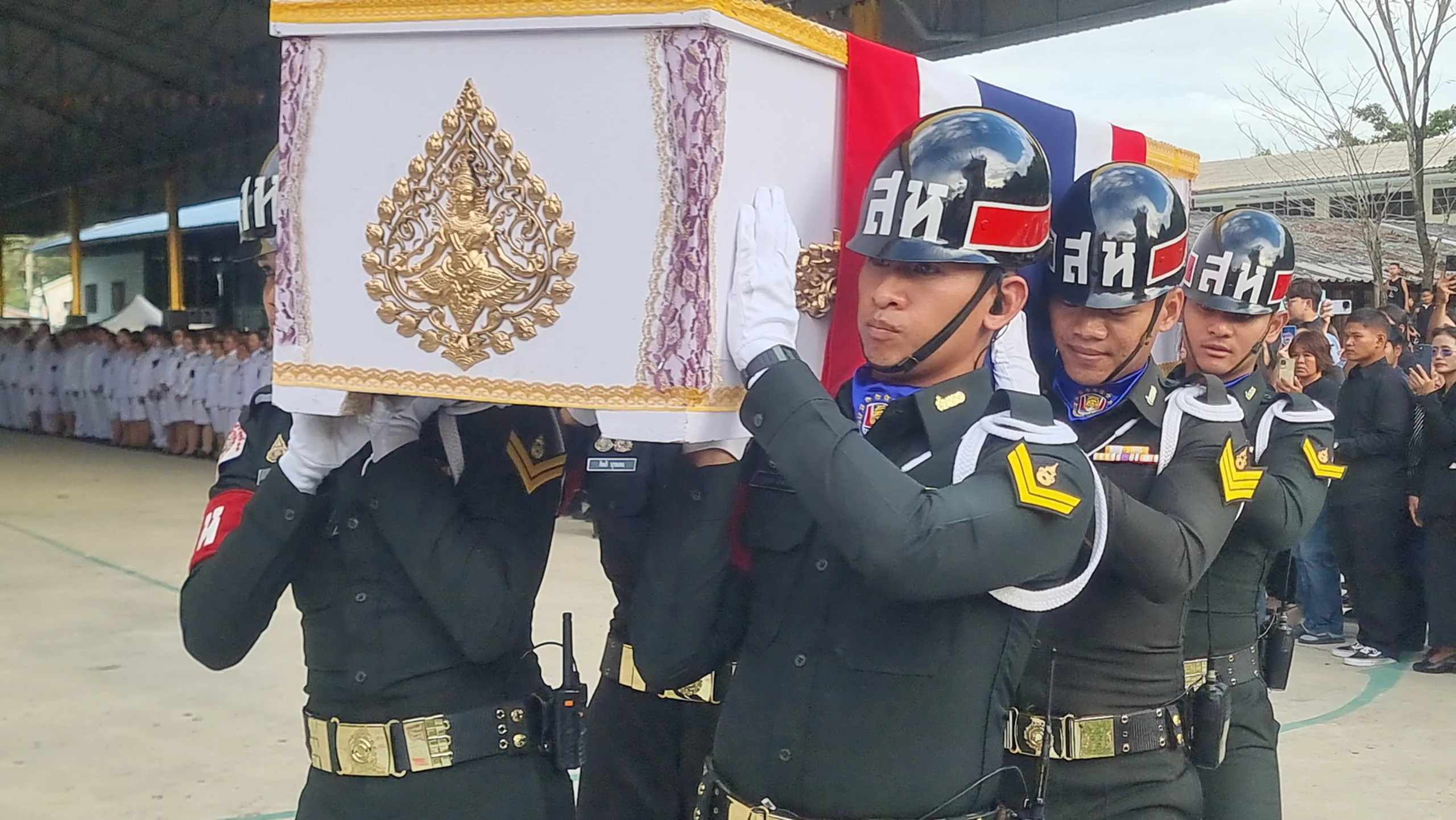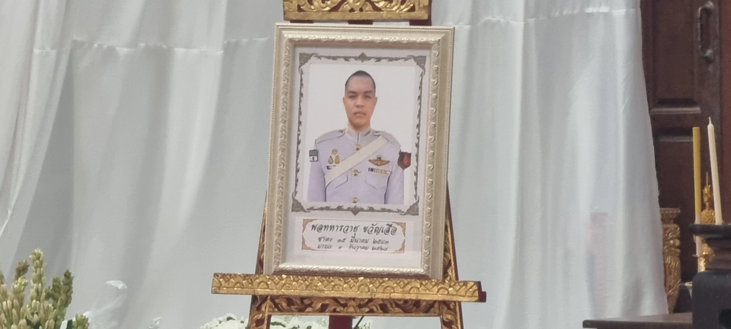 วันที่ 10 ธันวาคม 2568 ผู้สื่อข่าวรายงานว่า นายเอกวิทย์ มีเพียร ผู้ว่าราชการจังหวัดปทุมธานี พร้อมด้วย นางอภิสรา เกตุอินทร์ นายอำเภอคลองหลวง พล.อ.ณัฐพล ทิมสถิตย์ ผบ.ร.27 ร.31 พัน.3 นางสมทรง พันธ์เจริญวรกุล นายกองค์การบริหารส่วนจังหวัดพระนครศรีอยุธยา พล.ต.ท.คำรณวิทย์ ธูปกระจ่าง นายกองค์การบริหารส่วนจังหวัดปทุมธานี เจ้าหน้าที่วัฒนธรรมจังหวัดปทุมธานี และเจ้าหน้าที่หน่วยงานท้องถิ่น พร้อมด้วย ชมรมทหารผ่านศึก และข้าราชการทหาร พ่อค้าประชาชน เดินทางเข้าร่วมพิธีเคารพและรดน้ำศพ พลทหาร วายุ ขวัญเสือ หรือ “ไอซ์” อายุ 21 ปี สังกัด พัน.ร.27 ร.31 ณ วัดสว่างภพ เลียบคลองระพีพัฒน์ ตำบลคลองสี่ อำเภอคลองหลวง จังหวัดปทุมธานี พลทหาร วายุ ขวัญเสือ หรือ “ไอซ์” อายุ 21 ปี สังกัด พัน.ร.27 ร.31 พัน.3 โดนสะเก็ดระเบิดอาวุธวิถีโค้งของฝ่ายกัมพูชา ส่งผลให้ได้รับบาดเจ็บแขนขวาขาด หลังเกิดการปะทะในพื้นที่ปราสาทตาควาย รักษาตัวอยู่ที่ รพ.พนมดงรัก ก่อนจะเสียชีวิตในช่วงเช้าที่ผ่านมา
