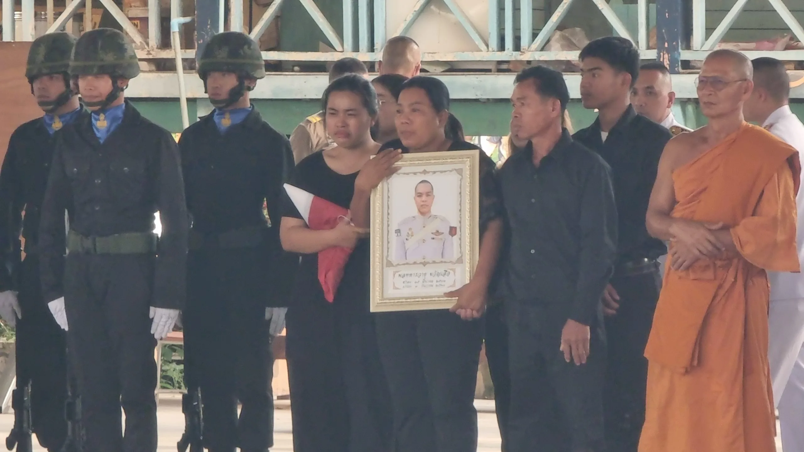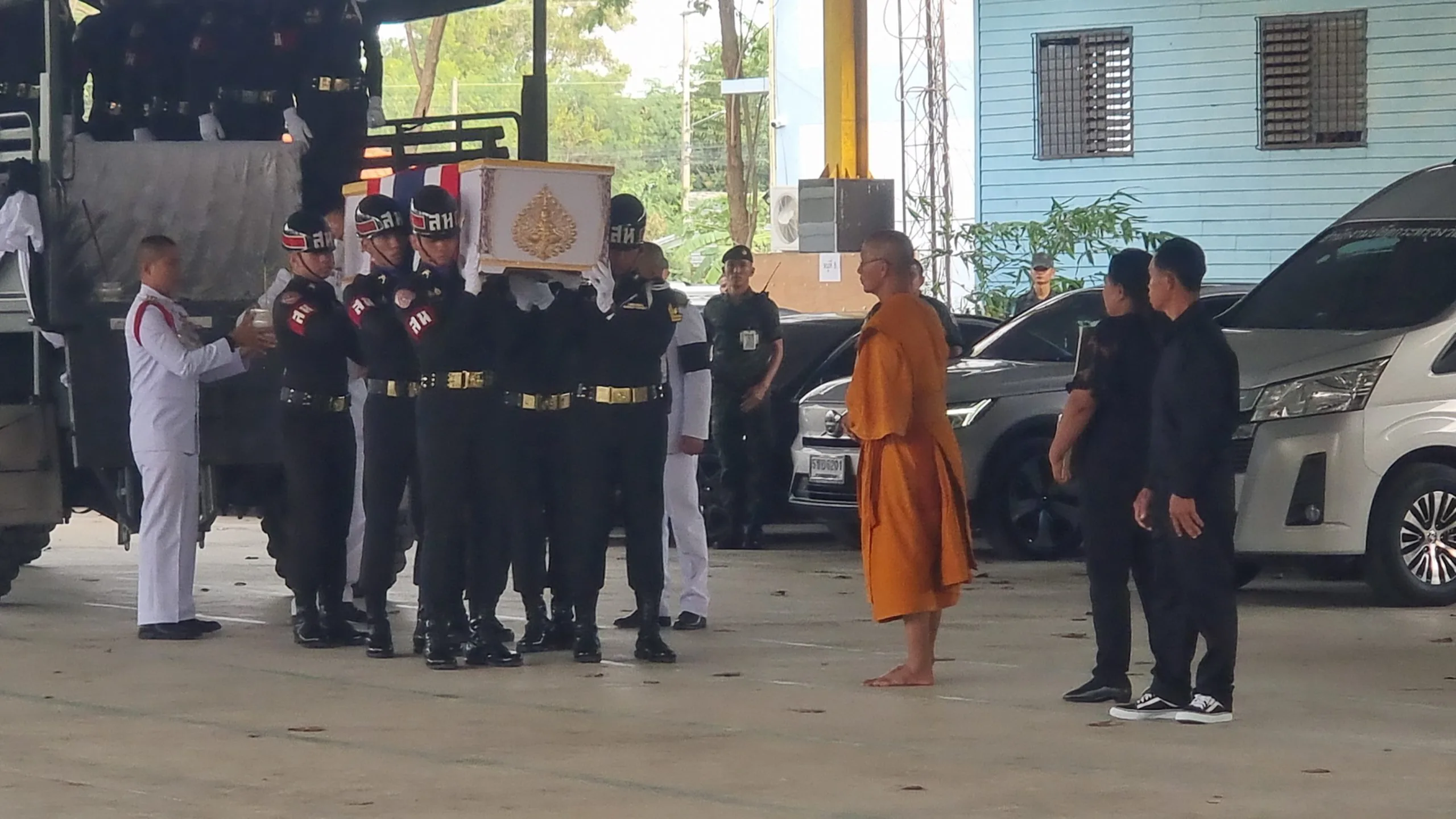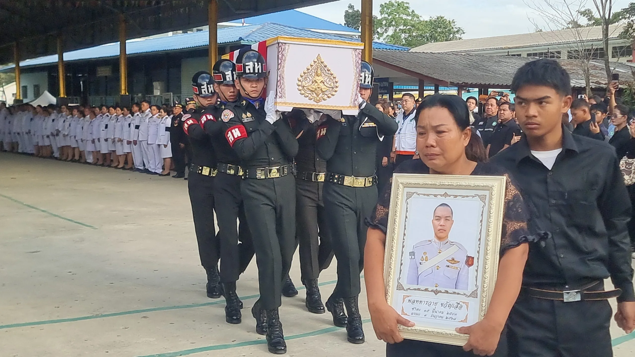 วันที่ 10 ธันวาคม 2568 ผู้สื่อข่าวรายงานว่า นายเอกวิทย์ มีเพียร ผู้ว่าราชการจังหวัดปทุมธานี พร้อมด้วย นางอภิสรา เกตุอินทร์ นายอำเภอคลองหลวง พล.อ.ณัฐพล ทิมสถิตย์ ผบ.ร.27 ร.31 พัน.3 นางสมทรง พันธ์เจริญวรกุล นายกองค์การบริหารส่วนจังหวัดพระนครศรีอยุธยา พล.ต.ท.คำรณวิทย์ ธูปกระจ่าง นายกองค์การบริหารส่วนจังหวัดปทุมธานี เจ้าหน้าที่วัฒนธรรมจังหวัดปทุมธานี และเจ้าหน้าที่หน่วยงานท้องถิ่น พร้อมด้วย ชมรมทหารผ่านศึก และข้าราชการทหาร พ่อค้าประชาชน เดินทางเข้าร่วมพิธีเคารพและรดน้ำศพ พลทหาร วายุ ขวัญเสือ หรือ “ไอซ์” อายุ 21 ปี สังกัด พัน.ร.27 ร.31 ณ วัดสว่างภพ เลียบคลองระพีพัฒน์ ตำบลคลองสี่ อำเภอคลองหลวง จังหวัดปทุมธานี พลทหาร วายุ ขวัญเสือ หรือ “ไอซ์” อายุ 21 ปี สังกัด พัน.ร.27 ร.31 พัน.3 โดนสะเก็ดระเบิดอาวุธวิถีโค้งของฝ่ายกัมพูชา ส่งผลให้ได้รับบาดเจ็บแขนขวาขาด หลังเกิดการปะทะในพื้นที่ปราสาทตาควาย รักษาตัวอยู่ที่ รพ.พนมดงรัก ก่อนจะเสียชีวิตในช่วงเช้าที่ผ่านมา