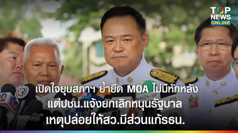 “นายกฯอนุทิน” เปิดใจยุบสภาฯ ย้ำยันยึด MOAไม่มีหักหลัง แต่ปชน.แจ้งยกเลิกหนุนรัฐบาล เหตุปล่อยให้สว.มีส่วนแก้รธน.