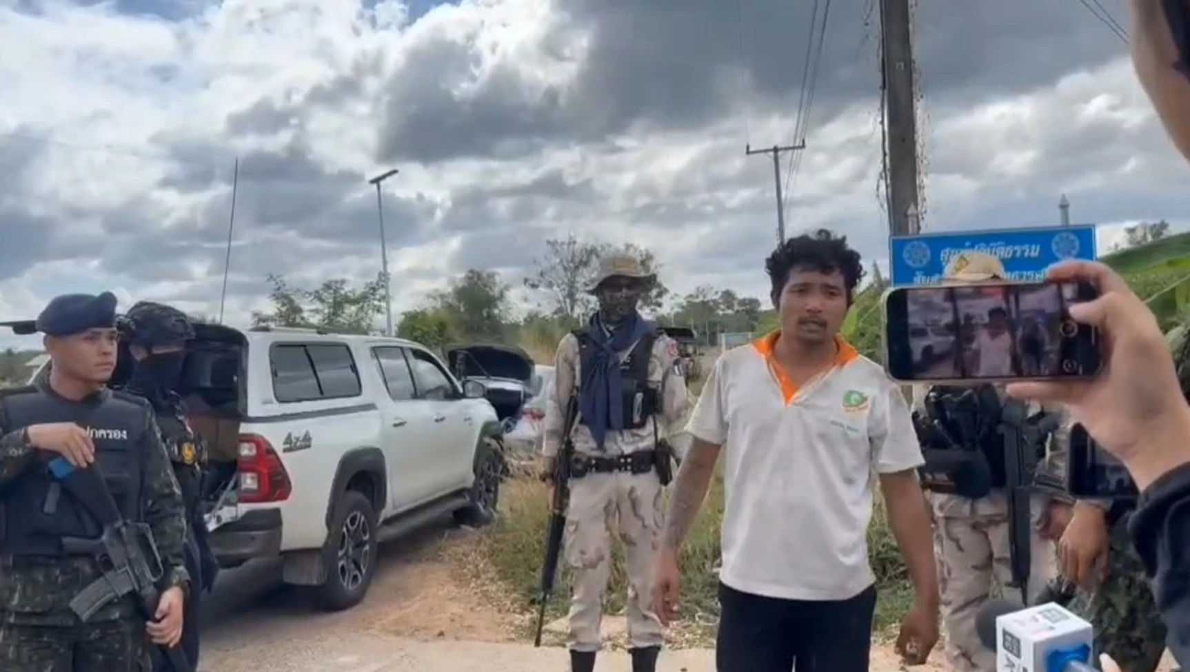 ชุด ชรบ. ประจำหมู่บ้าน จึงรีบเข้ามาตรวจสอบ แต่พอชายคนดังกล่าวเห็น ชรบ. ตกใจวิ่งหลบหนีเข้าไปในไร่อ้อย เหตุนี้จึงทำให้เจ้าหน้าที่กรมการปกครอง พนมดงรัก เข้ามาควบคุมตัว จนทราบว่าชายคนดังกล่าวเป็นคนในหมู่บ้าน และมีอาการเมา พูดจาวกวน พร้อมกล่าวอ้างว่า “ ผมตกใจ เอาปืนมาขู่ผมผมก็ตกใจสิ ”