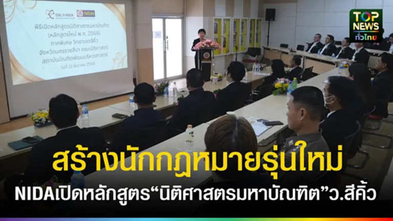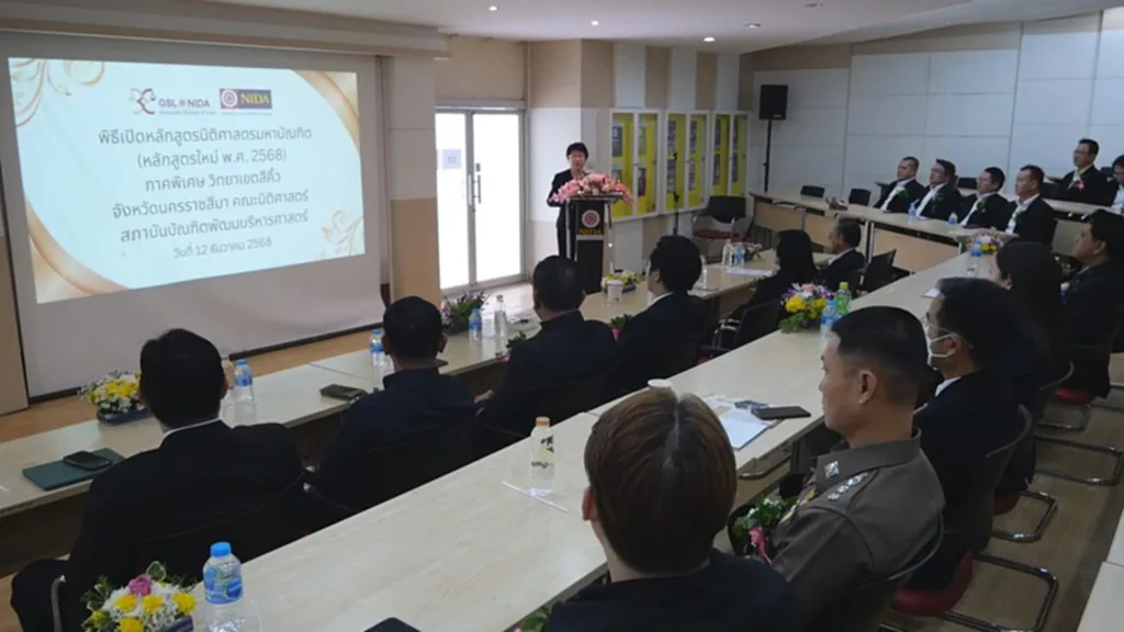 วันที่ 12 ธันวาคม 2568 เวลา 10.30 น. ที่สถาบันบัณฑิตพัฒนบริหารศาสตร์ (NIDA) วิทยาเขตสีคิ้ว จังหวัดนครราชสีมา สถาบันบัณฑิตพัฒนบริหารศาสตร์เปิดหลักสูตร นิติศาสตรมหาบัณฑิต (หลักสูตรใหม่ พ.ศ. 2568) อย่างเป็นทางการ โดยมี ศาสตราจารย์ ดร.ทิพวรรณ หล่อสุวรรณรัตน์ อธิการบดีสถาบันบัณฑิตพัฒนบริหารศาสตร์ เป็นประธานในพิธีเปิด ร่วมด้วย รองศาสตราจารย์ ดร.อมรรัตน์ กุลสุจริต คณบดีคณะนิติศาสตร์ฯ พร้อมทั้งได้รับเกียรติจาก นายอนุพงศ์ สุขสมนิตย์ ผู้ว่าราชการจังหวัดนครราชสีมา เข้าร่วมเป็นสักขีพยานในพิธีเปิดครั้งนี้