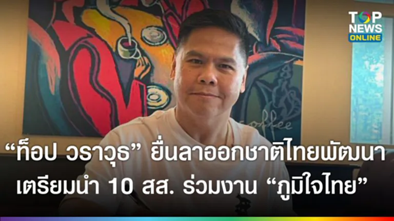 “ท็อป วราวุธ” ยื่นลาออกสมาชิกพรรค “ชาติไทยพัฒนา” เป็นทางการ เตรียมนำ 10 สส. ร่วมงาน “ภูมิใจไทย”