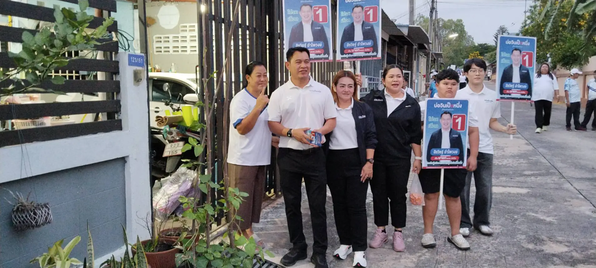 ผู้สมัครสมาชิก อบต.บ่อวิน เบอร์ 4 เขตเลือกตั้งที่ 2 พร้อมทีมงานเดินหาเสียงตามบ้านได้กระแสตอบรับดีเพราะเป็นคนรุ่นใหม่ที่ประชาชนต้องการ