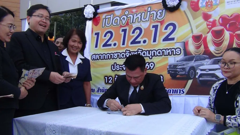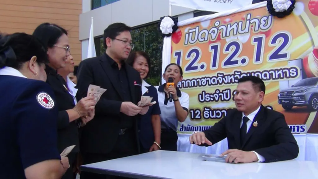 พ่อเมืองมุกดาหาร เปิดจำหน่ายสลากกาชาด พร้อมแถลงข่าวการจัดงานกาชาดและงานของดีจังหวัดมุกดาหาร ประจำปี 2569