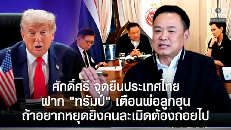 สิ่งที่เราต้องป้องกันอธิปไตยของเราป้องกันดินแดนของเรา ป้องกันทรัพย์สินของคนไทยและสุดท้ายคือเราจะต้องป้องกันและดำเนินการอย่างสูงสุดคือป้องกันชีวิตของประชาชนนี่คือเหตุที่ตนต้องอธิบายประธานาธิบดีสหรัฐฯ ไม่เช่นนั้นท่านก็จะไปเข้าใจว่าเราเป็นฝ่ายจู่โจม รุกรานประเทศกัมพูชา ซึ่งไม่ใช่เลยเราตอบโต้ แต่เราเวลาตอบโต้บางครั้งก็ต้องทำให้เขาได้ยิน ทำให้เขาเห็นว่าอย่ามาทำอย่างนี้กับเรา เราไม่ใช่ประเทศที่คุณอยากจะทำอะไรคุณก็มาทำได้ นี่คือสิ่งที่ตนได้บอกกับเขาไปแล้วว่าคนที่ไม่ได้เป็นคู่สัญญาอย่างเรากับกัมพูชา ถ้าเขาพูดกับฝ่ายไหนเขาก็คงใช้ข้อมูลฝ่ายเดียวไม่ได้ ฉะนั้นเขาก็ต้องมาฟังข้อมูลจากฝ่ายไทย ผู้ซึ่งเป็นฝ่ายที่ถูกกระทำก่อน