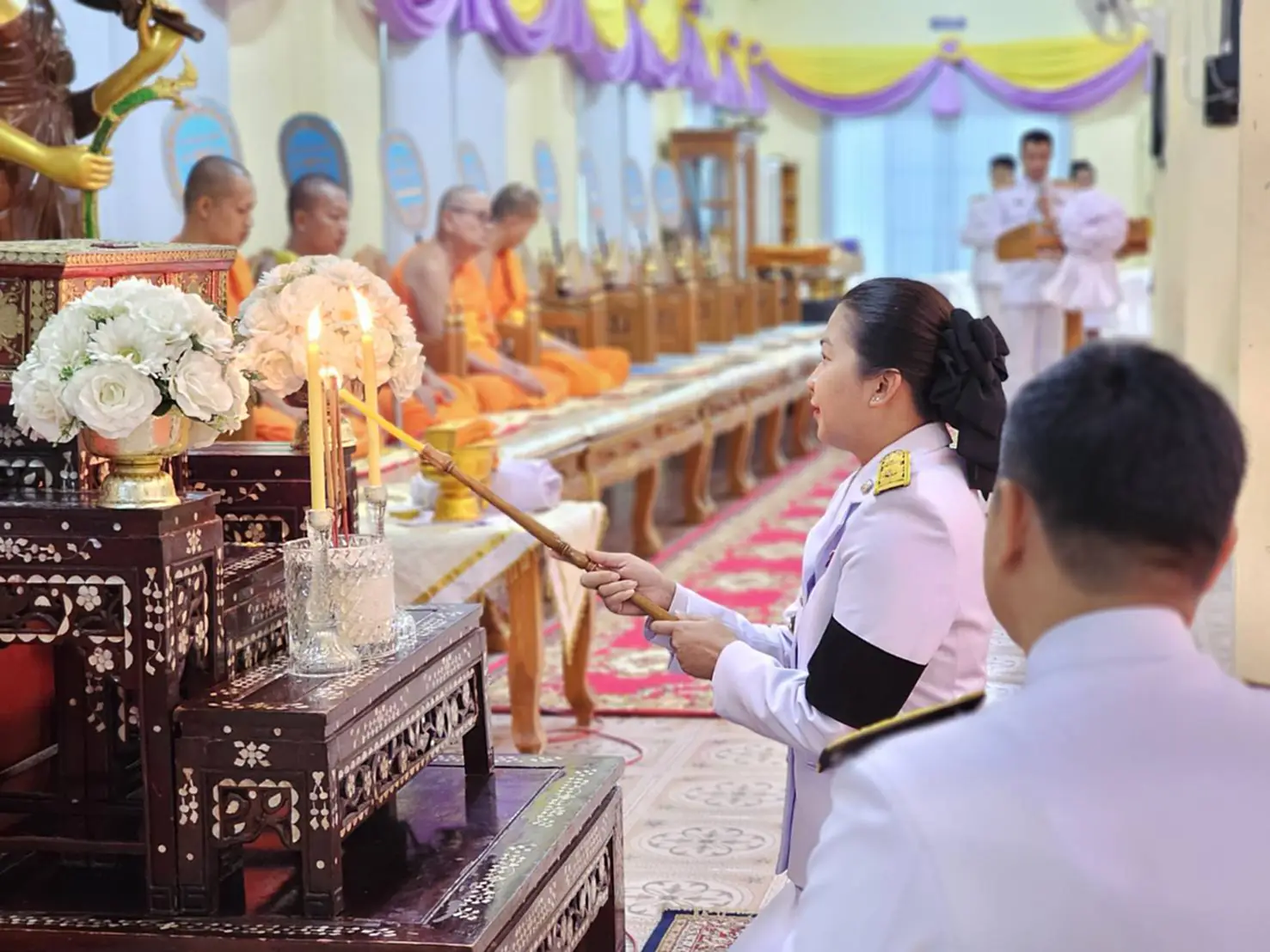 โดยในพิธี นางสาวสุวัชรี ศรีกำพี้ นายอำเภอลาดยาว ในฐานะประธานฝ่ายฆราวาส จุดธูปเทียนบูชาพระรัตนตรัย และถวายสักการะแด่พระฉายาลักษณ์สมเด็จพระบรมราชชนนีพันปีหลวง จากนั้นเข้าสู่พิธีทางพระพุทธศาสนา โดยมีพระสงฆ์สวดเจริญพระพุทธมนต์ ประกอบพิธีถวายจตุปัจจัยไทยธรรม และทอดผ้าไตรบังสุกุล เพื่ออุทิศถวายเป็นพระราชกุศล