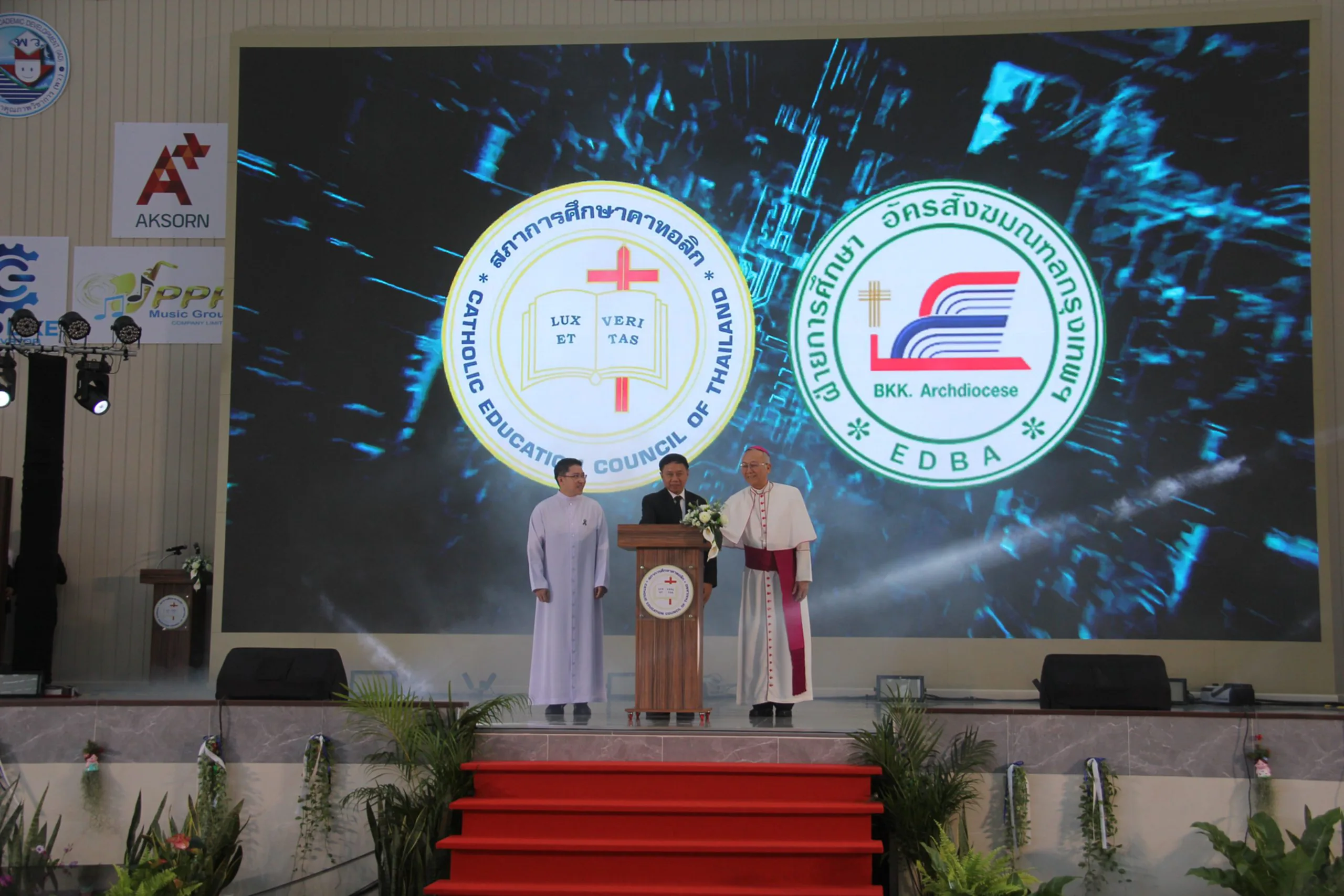 ผู้สื่อข่าวรายงานมาว่า ที่ โรงเรียนพระวิสุทธิวงส์ ถ.พหลโยธิน-ลำลูกกา ต.ลำไทร อ.ลำลูกกา จ.ปทุมธานี สภาการศึกษาคาทอลิกแห่งประเทศไทย และฝ่ายการศึกษาอัครสังฆมณฑลกรุงเทพฯ ได้ร่วมกันจัดงาน (EDBA 2025 BEST & BEYOND : Empowering School with Innovation and Heart)” ก้าวสู่ความเป็นเลิศ :พลังแห่งนวัตกรรมด้วยหัวใจ โดยได้รับเกียรติจาก พระอัครสังฆราชฟรังซิสเซเวียร์ วีระ อาภรณ์รัตน์ ประมุขแห่งอัครสังฆมณณฑลกรุงเทพ ฯ ประกอบวจนพิธีกรรม มีนายมณฑล ภาคสุวรรณ์ เลขาธิการคณะกรรมการส่งเสริมการศึกษาเอกชน ผู้แทนปลัดกระทรวงศึกษาธิการ เป็นประธานเปิดงาน บาทหลวง ดร. เอกรัตน์ หอมประทุม เลขาธิการสภาการศึกษาคาทอลิกแห่งประเทศไทย ประธานจัดงาน นายดงพล รุจิธรรมธัช รองผู้ว่าราชการจังหวัดปทุมธานี กล่าวต้อนรับ โดยซิสเตอร์มยุรา วาปีโส ผู้จัดการและผู้อำนวยการ โรงเรียนพระวิสุทธิวงส์ ให้การต้อนรับ เมื่อวันที่8 ธันวาคม 2568 ที่ผ่านมา