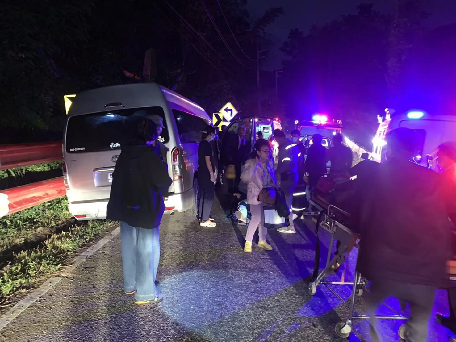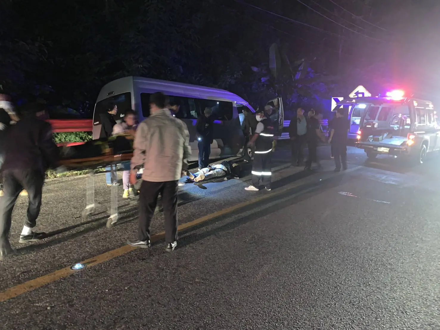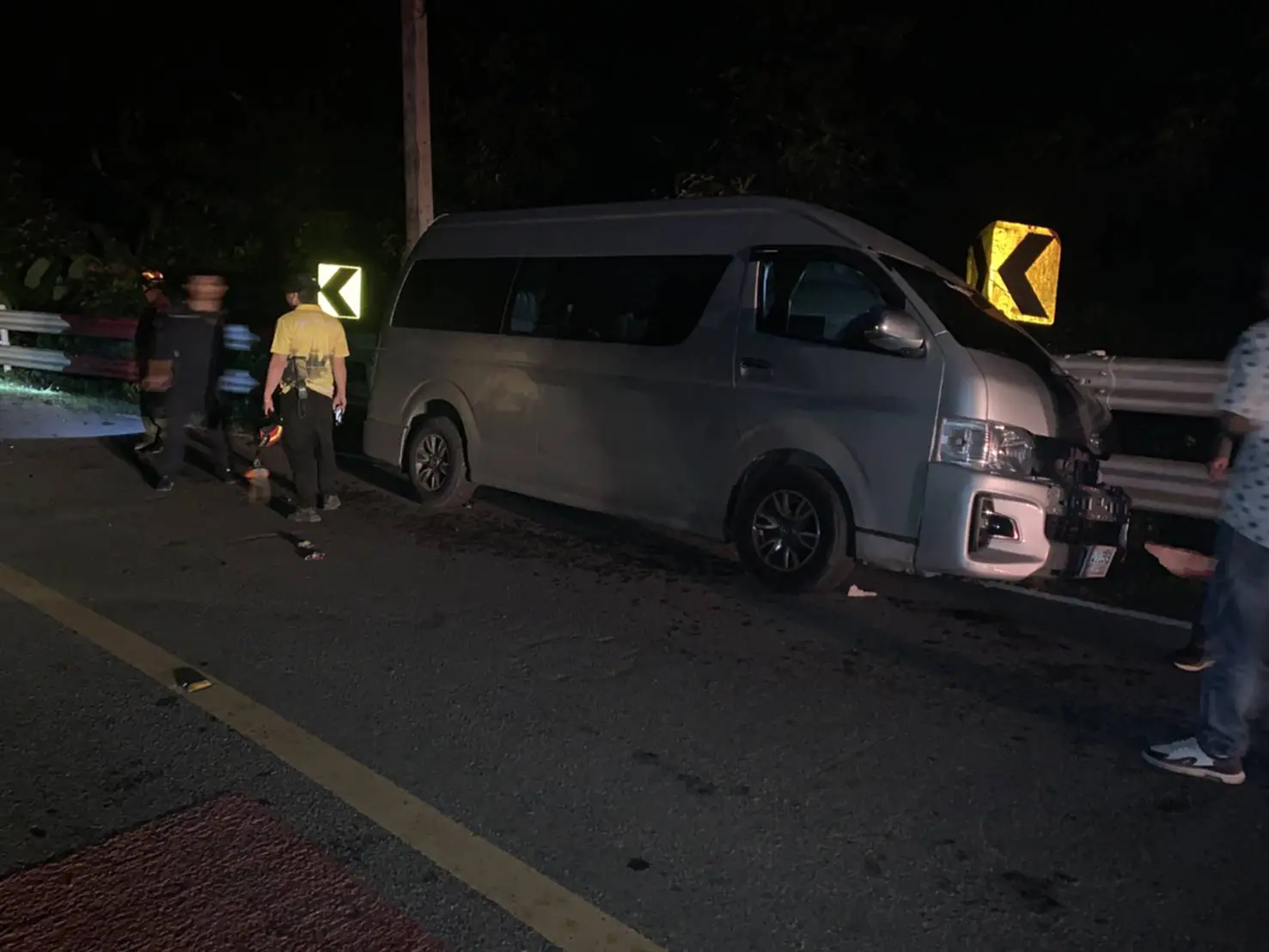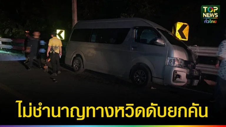 รถตู้ นักท่องเที่ยวไม่ชำนาญทาง เสียหลักลงข้างทาง บาดเจ็บเล็กน้อย 10 ราย