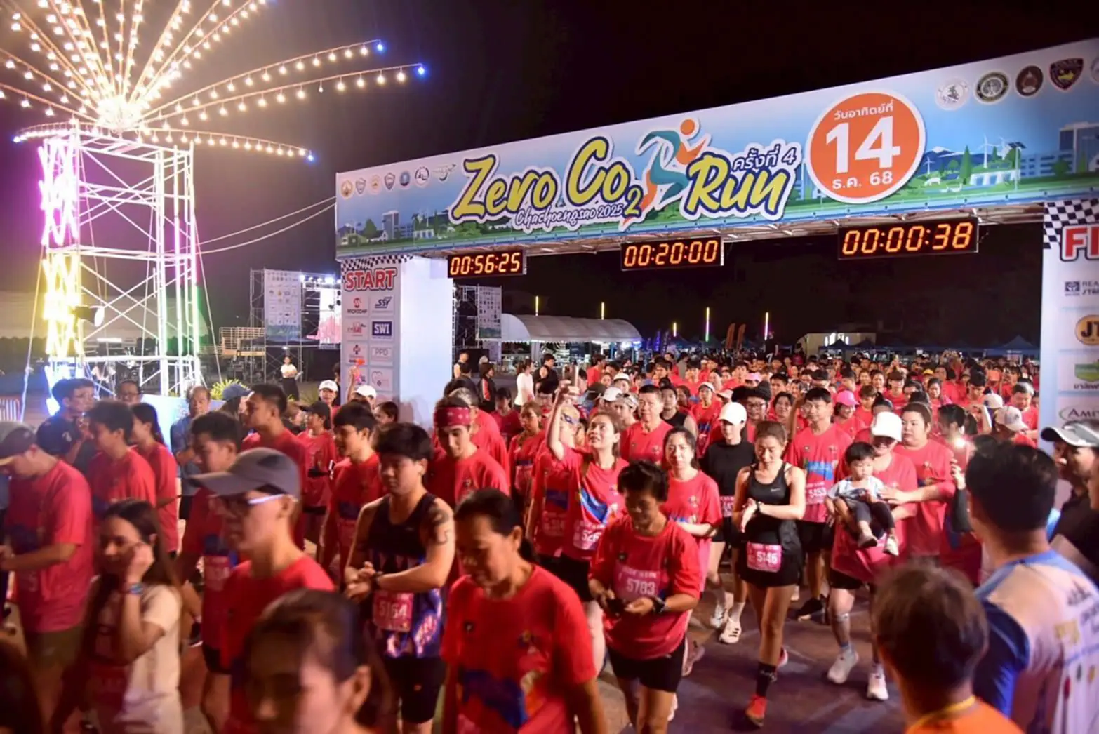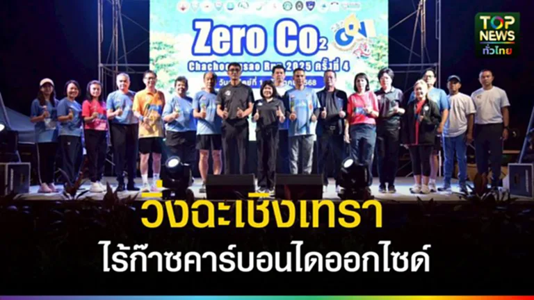 กิจกรรมวิ่งเพื่อสิ่งแวดล้อม “Zero Co2 Chachoengsao Run 2025” ในครั้งนี้ จัดวิ่งทั้งหมด 3 ระยะ ได้แก่ 21 กิโลเมตร 10 กิโลเมตร และ 5 กิโลเมตร มีผู้สนใจ เข้าร่วมกิจกรรม ทั้งหัวหน้าส่วนราชการ ภาคเอกชน นักวิ่ง ตลอดจนประชาชนทั่วไป ทั้งสิ้นกว่า 2,200 คน ในโอกาสนี้ผู้ว่าราชการจังหวัดฉะเชิงเทรา ได้เดินเยี่ยมชมบูทสินค้า OTOP และขอบคุณบูทผู้สนับสนุนอาหารและเครื่องดื่มแก่นักวิ่งอีกด้วย