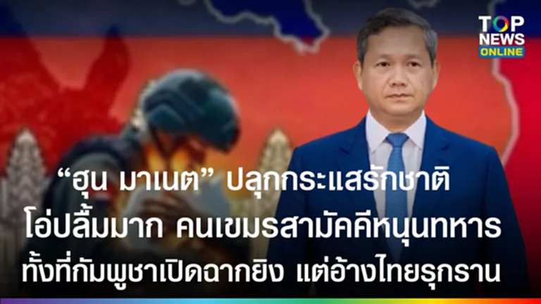 14 ธันวาคม 2568 นายฮุน มาเนต นายกรัฐมนตรีกัมพูชา โพสต์ภาพทหารกอดแผนที่ประเทศกัมพูชา พร้อมระบุข้อความผ่านเฟซบุ๊กว่า ผมรู้สึกภาคภูมิใจที่ได้เห็นความสามัคคีอันแข็งแกร่งของชาติกัมพูชา ในสถานการณ์ที่ประเทศของเรากำลังเผชิญกับความยากลำบาก เนื่องจากการรุกรานจากประเทศเพื่อนบ้าน