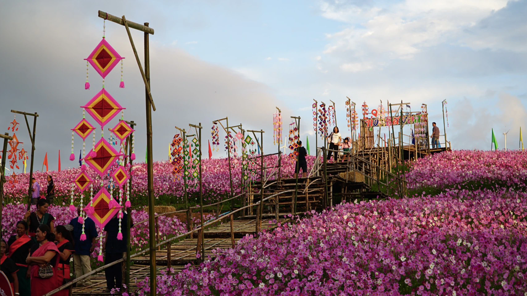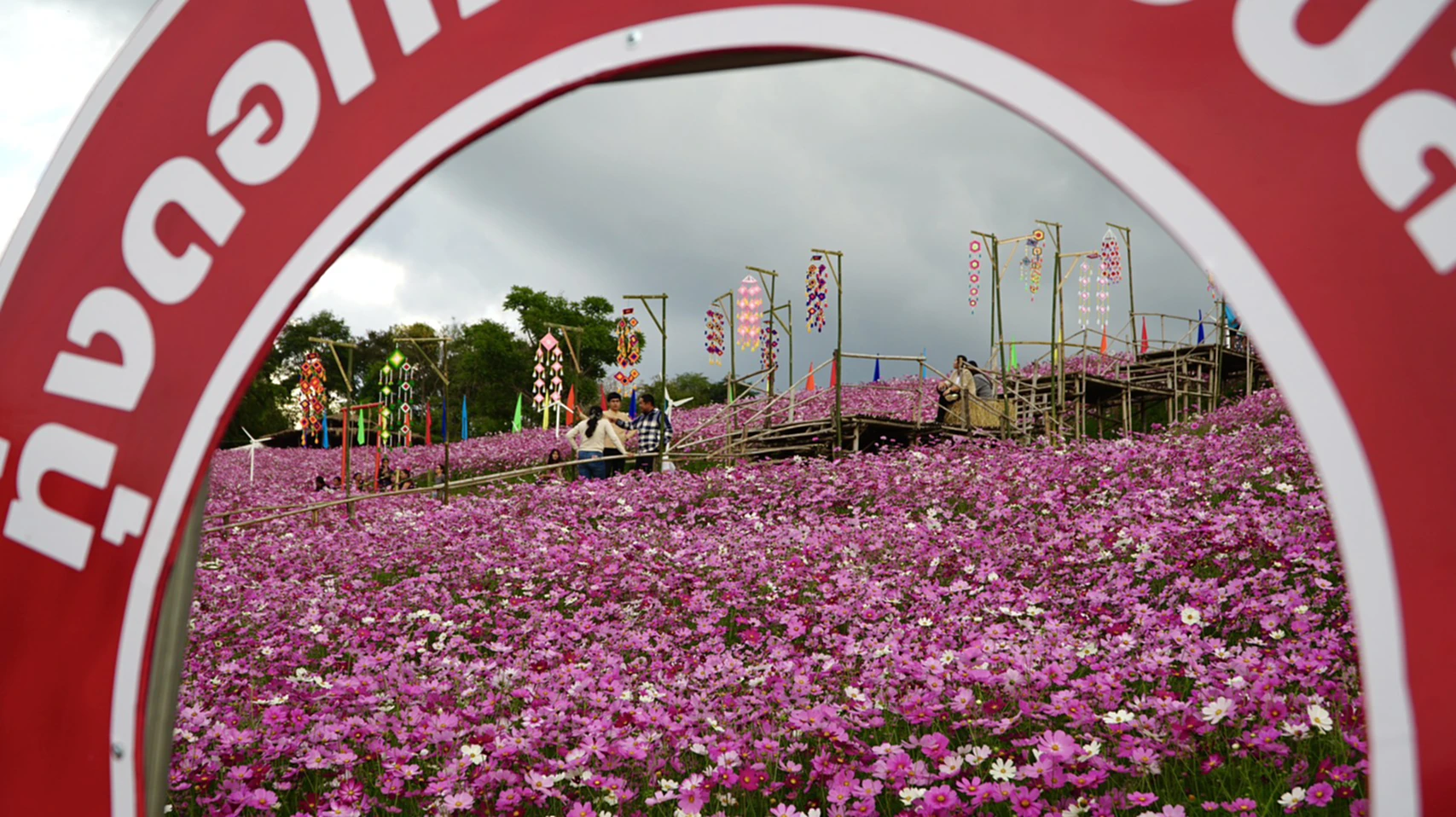 สีสันการท่องเที่ยวฤดูหนาวอำเภอเทพสถิตคึกคัก เปิดแหล่งท่องเที่ยวธรรมชาติ ทุ่งดอกคอสมอสซับสะเลเต บนขุนเขาสูง