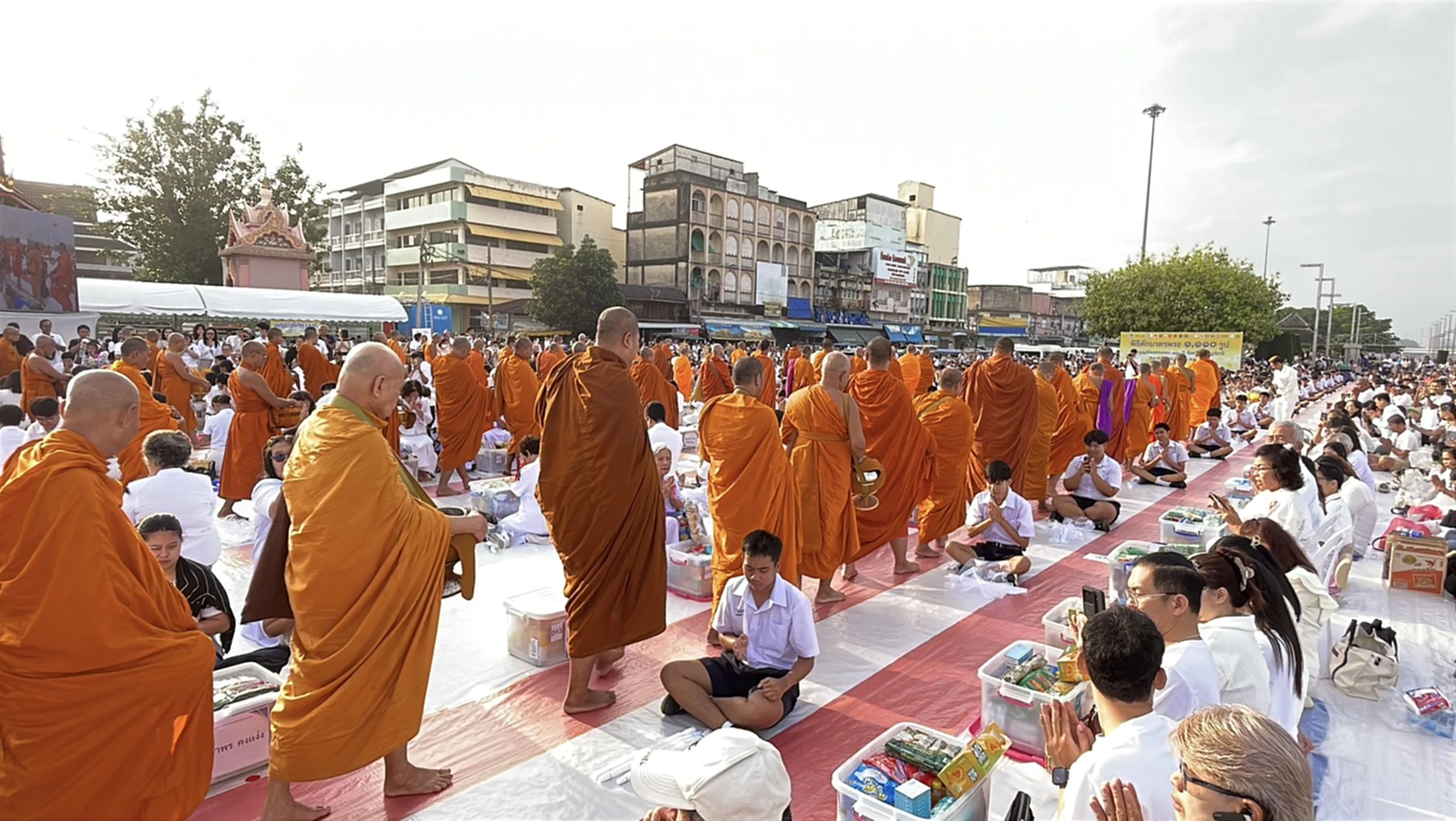 วันที่ 14 ธ.ค. 2568 ผู้สื่อข่าวรายงานว่า นายจุมพฏ วรรณฉัตรสิริ ผู้ว่าราชการจังหวัดสุราษฎร์ธานี เป็นประธานในพิธีทำบุญเมืองฉลองครบรอบ 110 ปี เมืองสุราษฎร์ธานี และพิธีตักบาตรพระสงฆ์ 1,110 รูป ณ บริเวณริมแม่น้ำตาปี วัดกลาง (เก่า) อ.เมืองสุราษฎร์ธานี จ.สุราษฎร์ธานี โดยจังหวัดสุราษฎร์ธานีร่วมกับคณะสงฆ์ หน่วยงานภาครัฐ ภาคเอกชน ชมรมตักบาตรสุราษฎร์ธานี และภาคีเครือข่าย จัดขึ้นอย่างยิ่งใหญ่ ท่ามกลางบรรยากาศแห่งความศรัทธาและความพร้อมเพรียงของพุทธศาสนิกชนจากทั่วทั้งจังหวัด