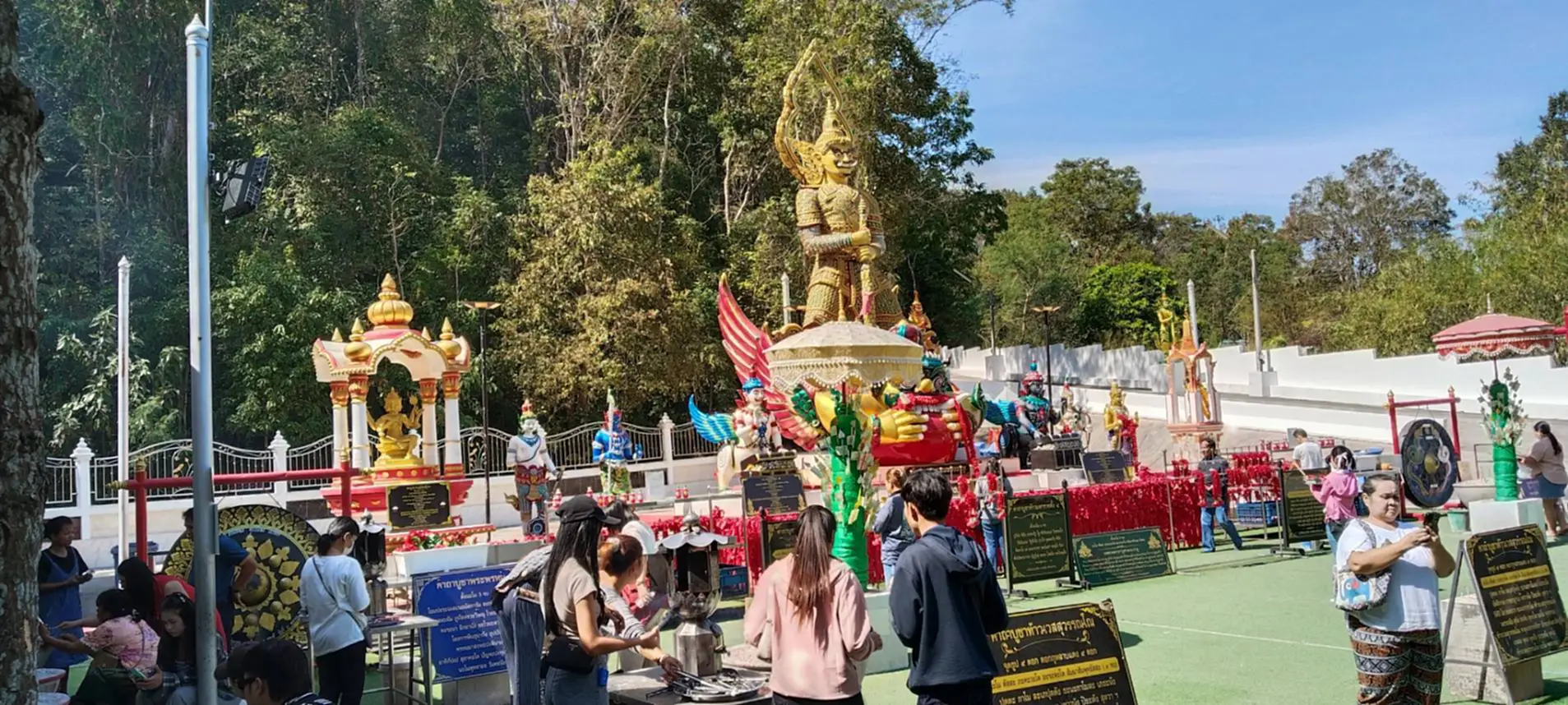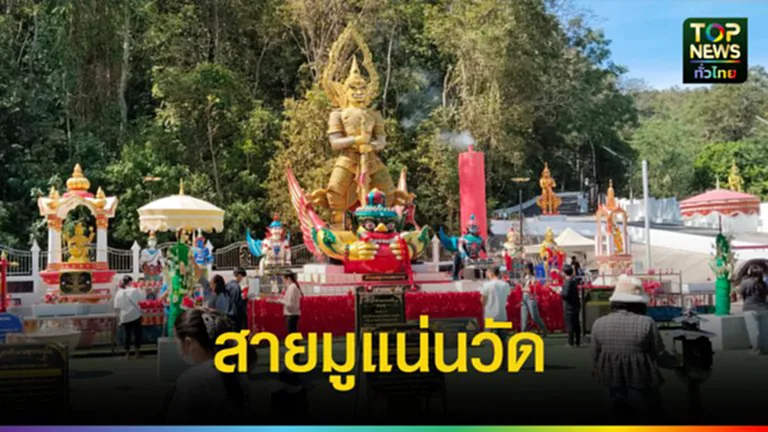 บรรยากาศก่อนวันออกรางวัลสลากกินแบ่งรัฐบาลงวดวันที่ 16 ธันวาคม 2568 คึกคักเป็นพิเศษ เมื่อประชาชนสายมูและผู้มีจิตศรัทธาจำนวนมาก เดินทางมากราบไหว้ขอพร “ท้าวเวสสุวรรณทรงราหู (ท่านทองล้น)” ยักษ์องค์ใหญ่สูง 9.9 เมตร มูลค่า 180 ล้านบาท ที่ตั้งอยู่บริเวณหน้าอุโบสถ วัดเขาช่องลม ต.เขาคันทรง อ.ศรีราชา จ.ชลบุรี หวังขอโชคลาภรับปีใหม่ 2569