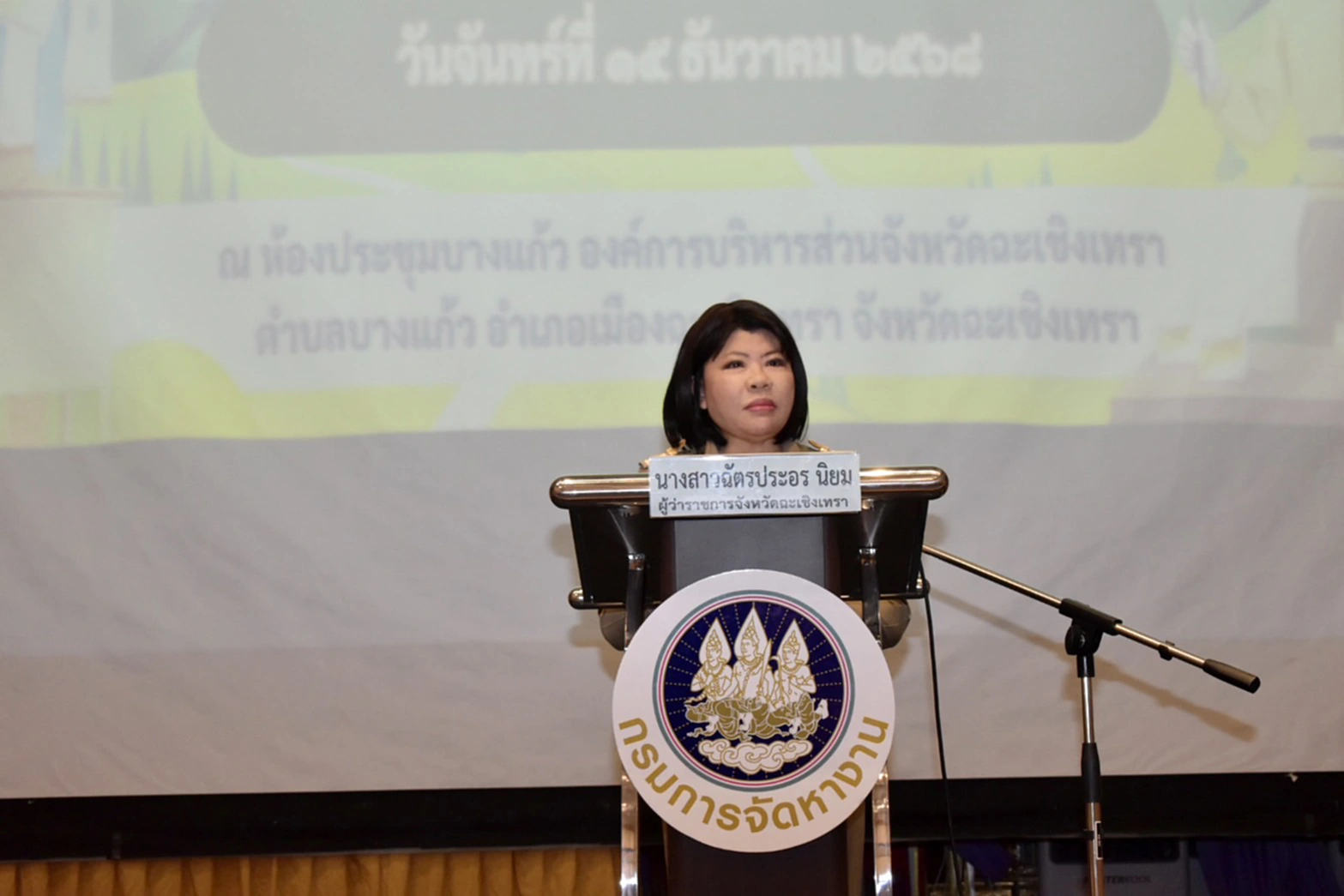 วันจันทร์ที่ 15 ธันวาคม 2568 ณ ห้องประชุมบางแก้ว องค์การบริหารส่วนจังหวัดฉะเชิงเทรา ตำบลบางแก้ว อำเภอเมืองฉะเชิงเทรา จังหวัดฉะเชิงเทรา นางสาวฉัตรประอร นิยม ผู้ว่าราชการจังหวัดฉะเชิงเทรา เป็นประธานเปิดการประชุมโครงการเพิ่มทักษะด้านอาชีพแก่นักเรียนที่ไม่ได้เรียนต่อหลังจบการศึกษาภาคบังคับ ประจำปีงบประมาณ พ.ศ.2569