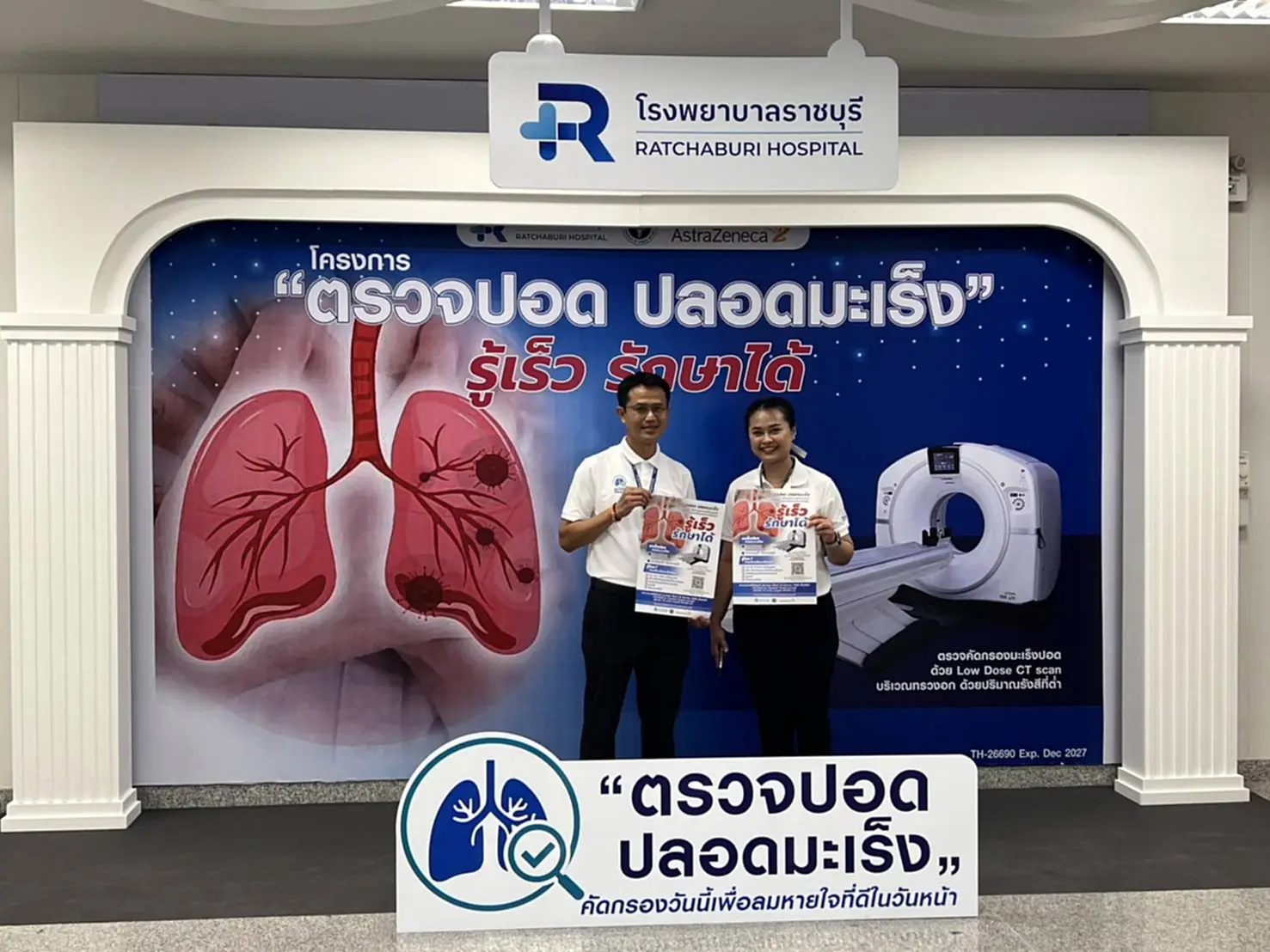 เพื่อลดอัตราการเสียชีวิตจากมะเร็งปอด ซึ่งเป็นหนึ่งในโรคร้ายแรงที่พบมากในประเทศไทยโครงการดังกล่าวจัดขึ้นจากความร่วมมือระหว่าง โรงพยาบาลราชบุรี บริษัท AstraZeneca และมูลนิธิโรงพยาบาลราชบุรี เพื่อเปิดโอกาสให้ประชาชนเข้าถึงการตรวจคัดกรองที่มีประสิทธิภาพ ค้นหาผู้ป่วยในระยะเริ่มต้น