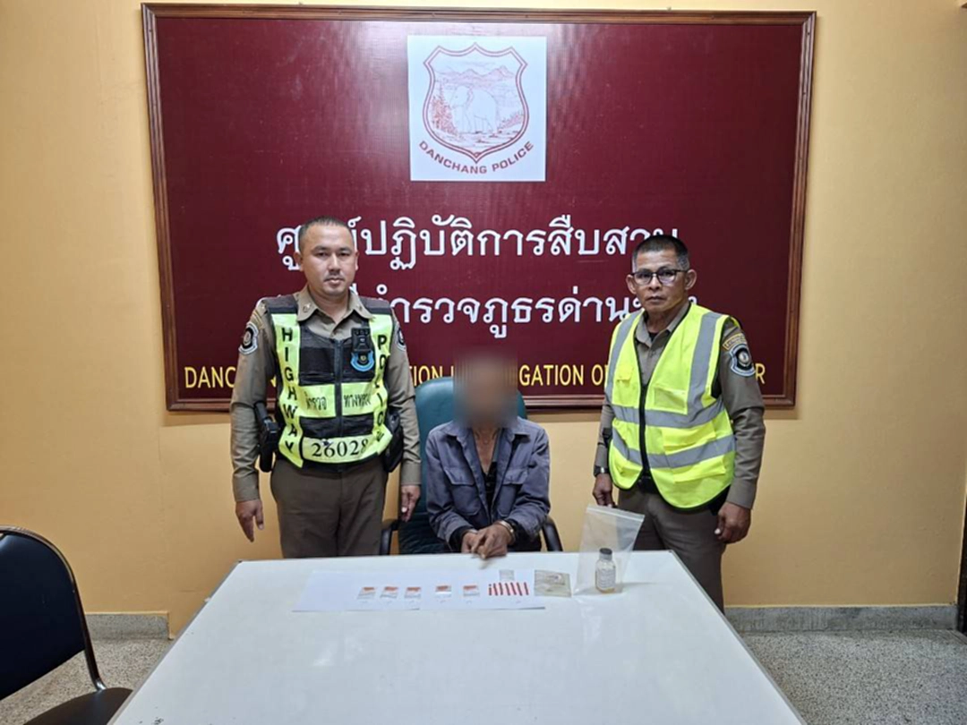 ที่จังหวัดสุพรรณบุรี เมื่อกลางดึกที่ผ่านมา ร.ต.อ.ณัฐ ปิ่นกระจัน รอง สารวัตรป้องกันสถานีตำรวจทางหลวง 6 กองกำกับการ 2 กองบังคับการตำรวจทางกลวง หัวหน้าหน่วยบริการประชาชนตำรวจทางหลวงด่านช้าง พร้อม ด.ต.ชัยมงคล คล้ายทอง ด.ต.ธงชัย ศรีเรือนงาม ออกตรวจพื้นที่เพื่อกวดขับจับกุมผู้กระทำผิดกฎหมาย ป้องกันปัญหาอาชญากรรม ยาเสพติด อาวุธปืน ในเขตพื้นที่รับผิดชอบไปตามถนนสาย 3086 ถึงบริเวณถนนทางเข้าหมู่บ้าน หมู่ 2 ตำบลด่านช้าง อำเภอด่านช้าง จังหวัดสุพรรณบุรี