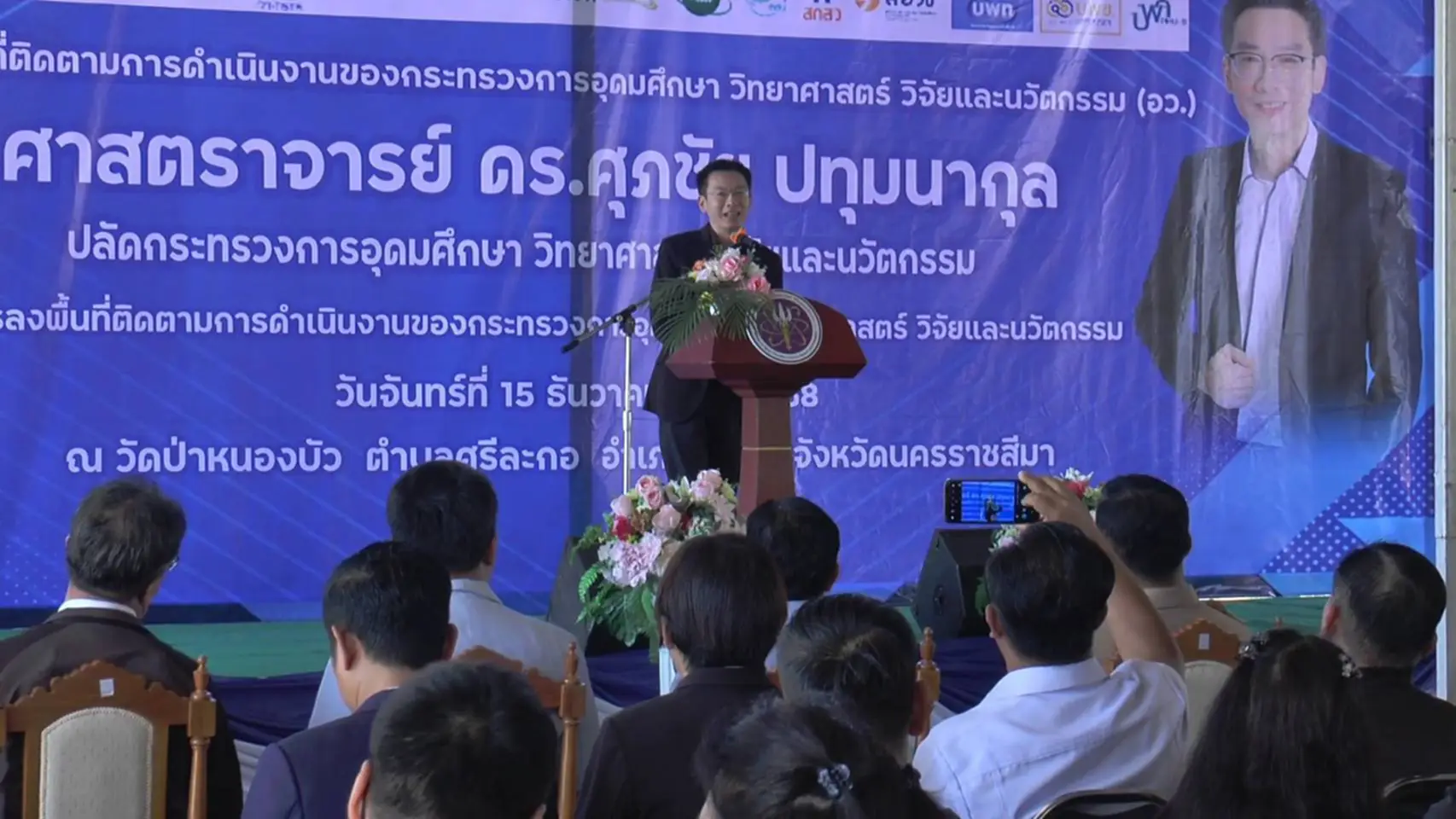 เมื่อวันที่ 15 ธ.ค. ศ.ดร.ศุภชัย ปทุมนากุล ปลัดกระทรวงการอุดมศึกษา วิทยาศาสตร์ วิจัยและนวัตกรรม (อว.) พร้อมคณะผู้บริหารระดับสูงของกระทรวง อว. ลงพื้นที่ติดตามการขับเคลื่อนงานด้านอุดมศึกษา วิทยาศาสตร์ วิจัยและนวัตกรรม (อววน.) ในพื้นที่จังหวัดนครราชสีมา ณ วัดหลุ่งประดู่ อำเภอห้วยแถลง และวัดป่าหนองบัวเกาะเพชร อำเภอจักราช เพื่อย้ำแนวนโยบาย “วิจัยติดดิน กินได้” นำองค์ความรู้และเทคโนโลยีช่วยเหลือประชาชนอย่างเป็นรูปธรรม