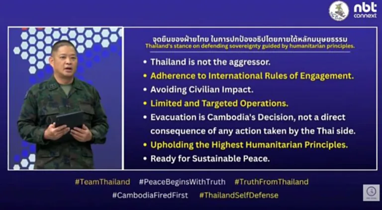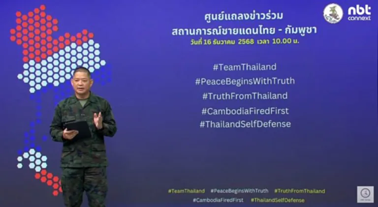 16 ธันวาคม 2568 ที่ศูนย์แถลงข่าวร่วมสถานการณ์ชายแดนไทย-กัมพูชา พลเรือตรีสุรสันต์ คงสิริ โฆษกศูนย์แถลงข่าวร่วมสถานการณ์ชายแดนไทย-กัมพูชา กล่าวถึงสถานการณ์สู้รบชายแดนไทย-กัมพูชาว่า ตั้งแต่วานนี้เวลา 12.00 น.ฝ่ายไทยสามารถยึดปราสาทตาควายไว้ได้ ส่วนบริเวณรอบตัวปราสาทในปัจจุบันกองทัพบกยังมีปฏิบัติการทางทหารเพื่อควบคุมพื้นที่ให้ได้ 100 เปอร์เซนต์ ขณะที่เวลา 19.00 น. ฝ่ายกัมพูชาระดมยิงอาวุธหนักเข้าใส่พื้นที่ช่องกร่าง จังหวัดสุรินทร์ ทําให้กําลังพลฝ่ายไทยเสียชีวิตหนึ่งนาย ส่งผลให้ยอดรวมกําลังพลที่สูญเสียจํานวน 17 นาย ส่วนเช้าวันนี้เวลา 06.47 นาทีฝ่ายกัมพูชายังเปิดฉากโจมตีเข้ามายังดินแดนอธิปไตยของไทยตลอดแนวชายแดน ทําให้ฝ่ายไทยจําเป็นต้องป้องกันตนเอง ซึ่งขณะนี้ยังมีการปะทะต่อเนื่องทั้งแนวชายแดนกองทัพภาคที่หนึ่งและกองทัพภาคที่สอง