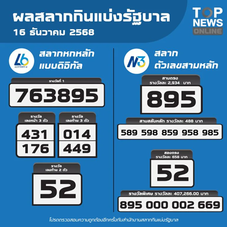 ตรวจหวย ผลสลากกินแบ่งรัฐบาล งวดประจำวันที่ 16 ธันวาคม 2568
