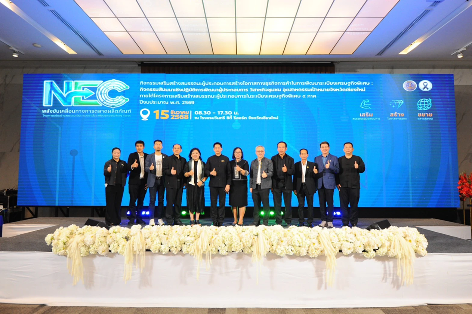 วันที่ 15 ธันวาคม 2568 นายนักปราชญ์ ไชยานนท์ หัวหน้าสำนักงานจังหวัดเชียงใหม่ เป็นประธานในพิธีเปิด การสัมมนา “NEC พลังขับเคลื่อนทางการตลาดผลิตภัณฑ์” กิจกรรมเสริมสร้างสมรรถนะผู้ประกอบการสร้างโอกาสทางธุรกิจการค้าในการพัฒนาระเบียงเศรษฐกิจพิเศษ กิจกรรมสัมมนาเชิงปฏิบัติการพัฒนาผู้ประกอบการ วิสาหกิจชุมชน อุตสาหกรรมเป้าหมายจังหวัดเชียงใหม่ ภายใต้โครงการเสริมสร้างสมรรถนะผู้ประกอบการในระเบียงเศรษฐกิจพิเศษ 4 ภาค ปีงบประมาณ พ.ศ. 2569 ณ โรงแรมวินทรี ซิตี้ รีสอร์ต จังหวัดเชียงใหม่